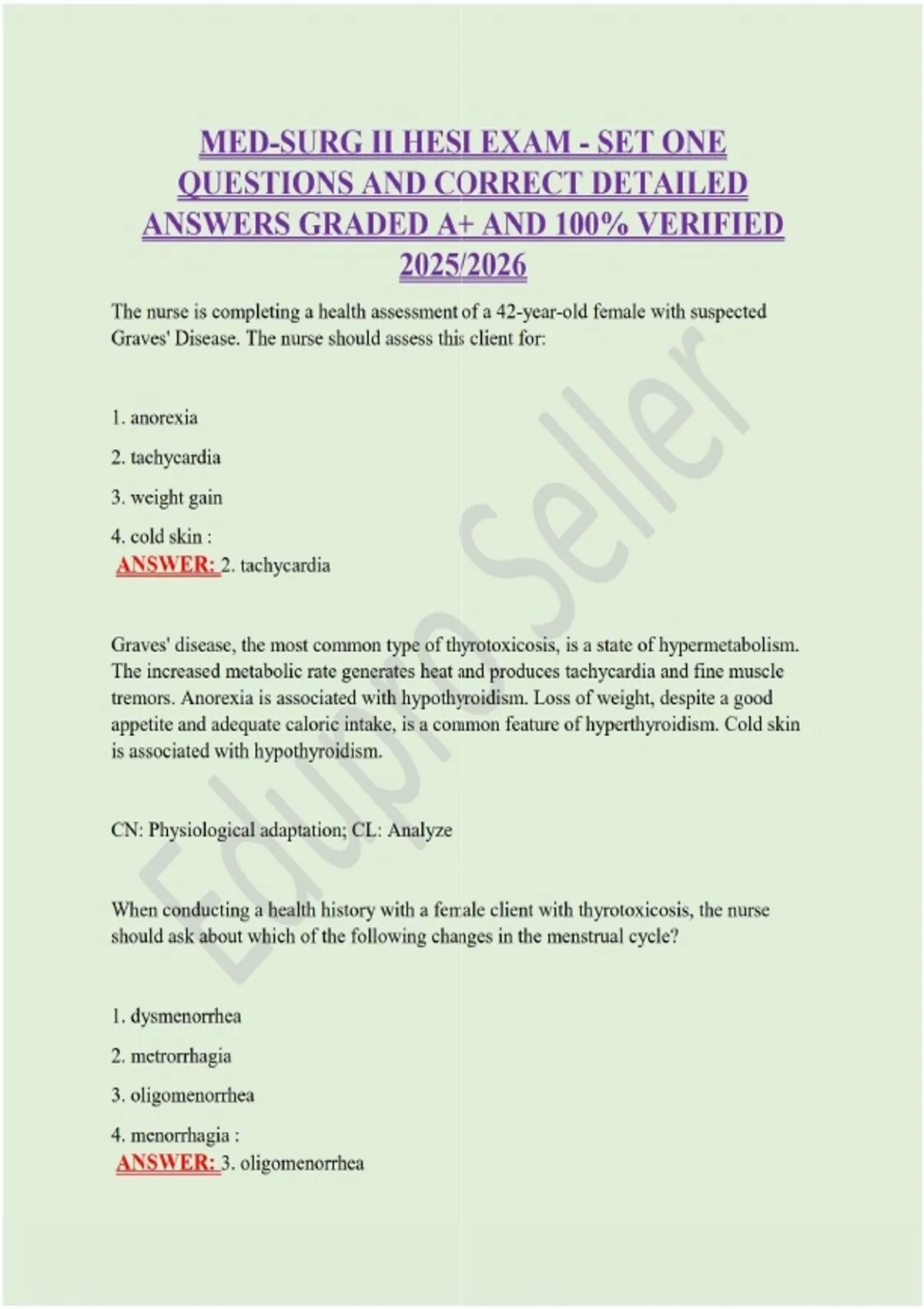 MED-SURG II HESI EXAM - SET ONE QUESTIONS AND CORRECT DETAILED ANSWERS GRADED A+ AND 100% VERIFIED 2025/2026