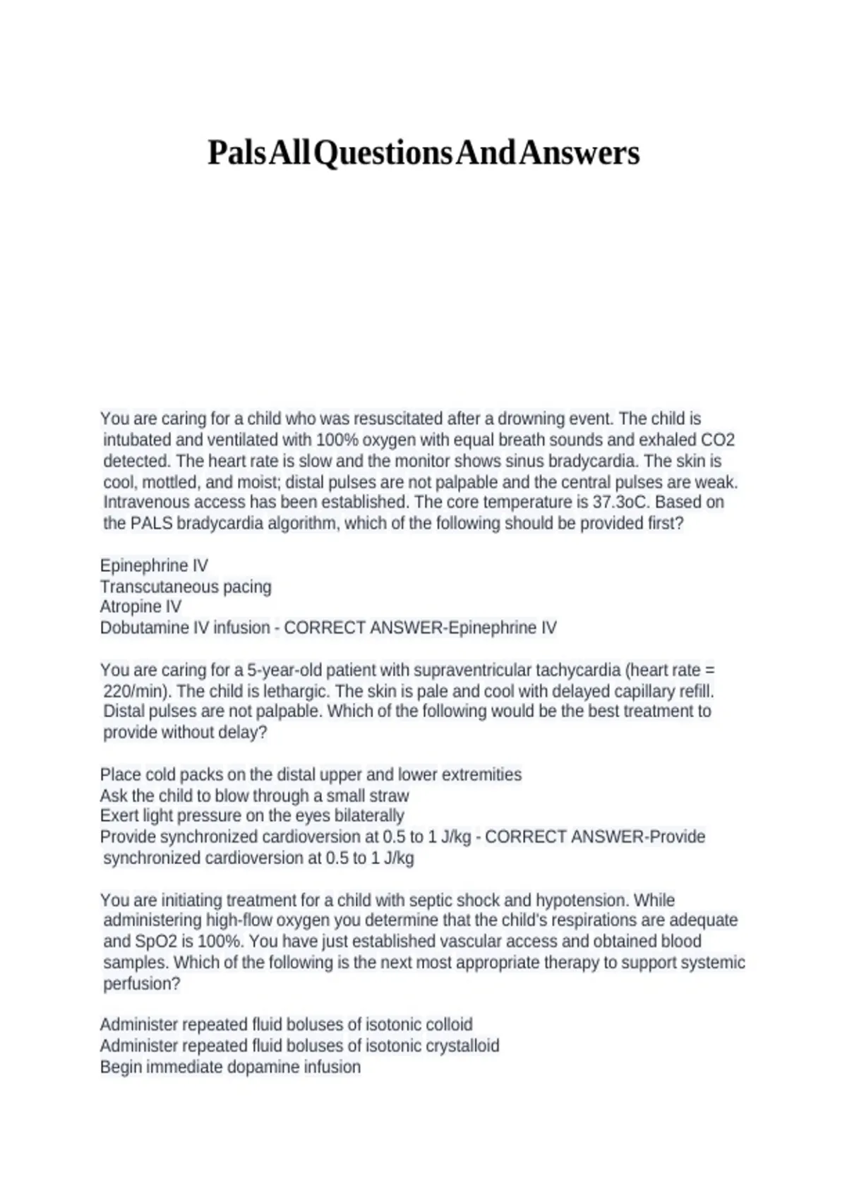Provide synchronized cardioversion at 0.5 to 1 J/kg - CORRECT ANSWER-Provide