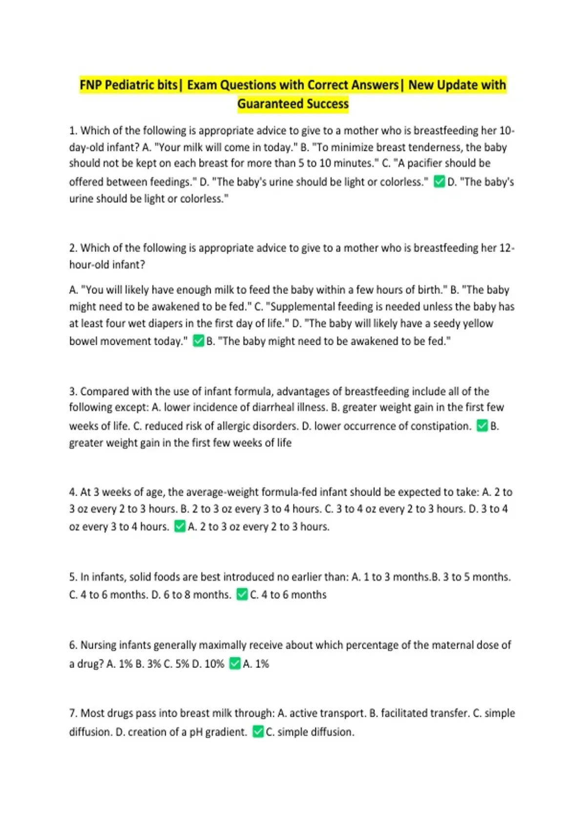 FNP Pediatric bits| Exam Questions with Correct Answers| New Update