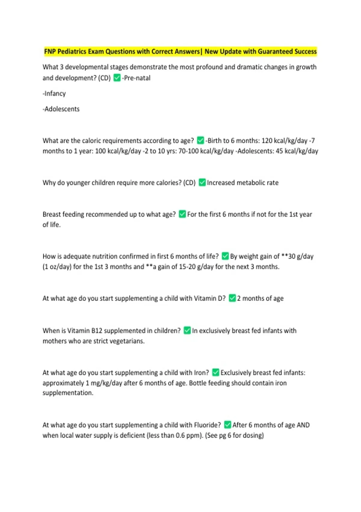 FNP Pediatrics Exam Questions with Correct Answers| New Update