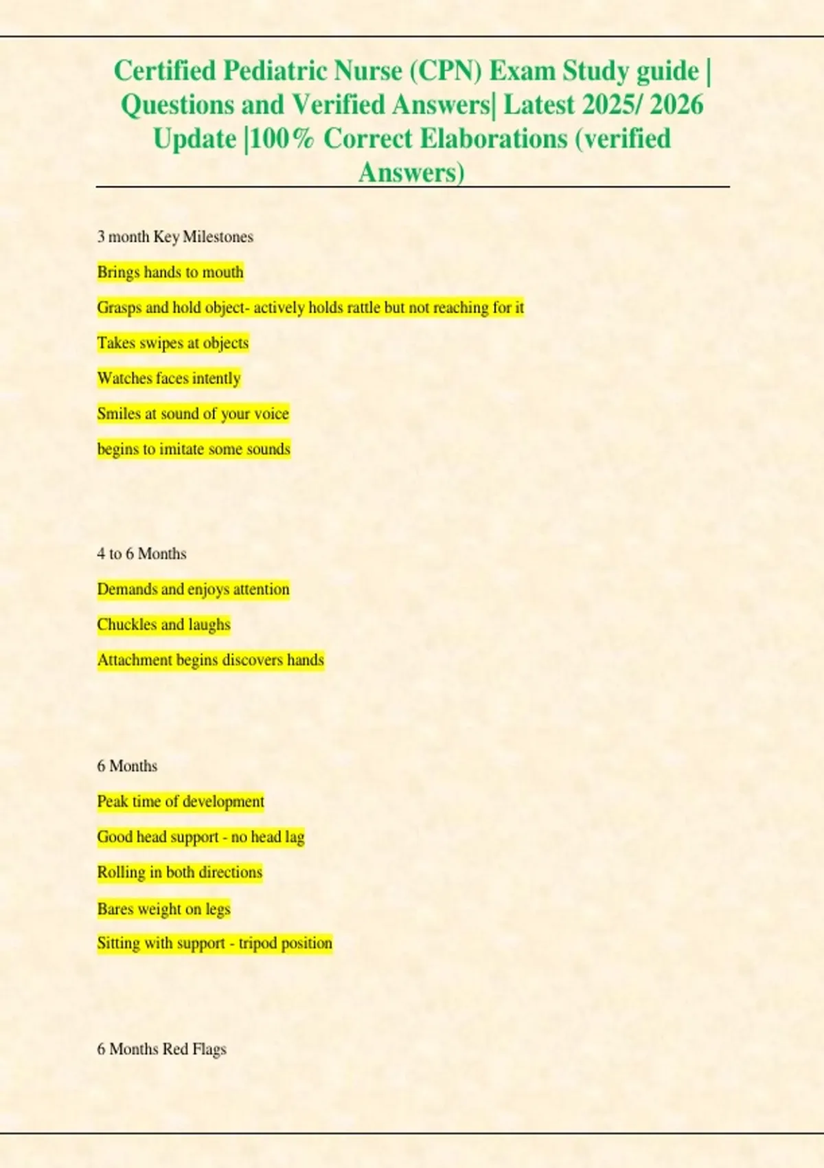 This study guide is designed to support preparation for the Certified Pediatric Nurse (CPN) exam, fully updated for the 2025–2026 testing cycle. It includes exam-style questions with verified correct answers and detailed explanations covering essential pediatric nursing concepts and clinical scenarios.