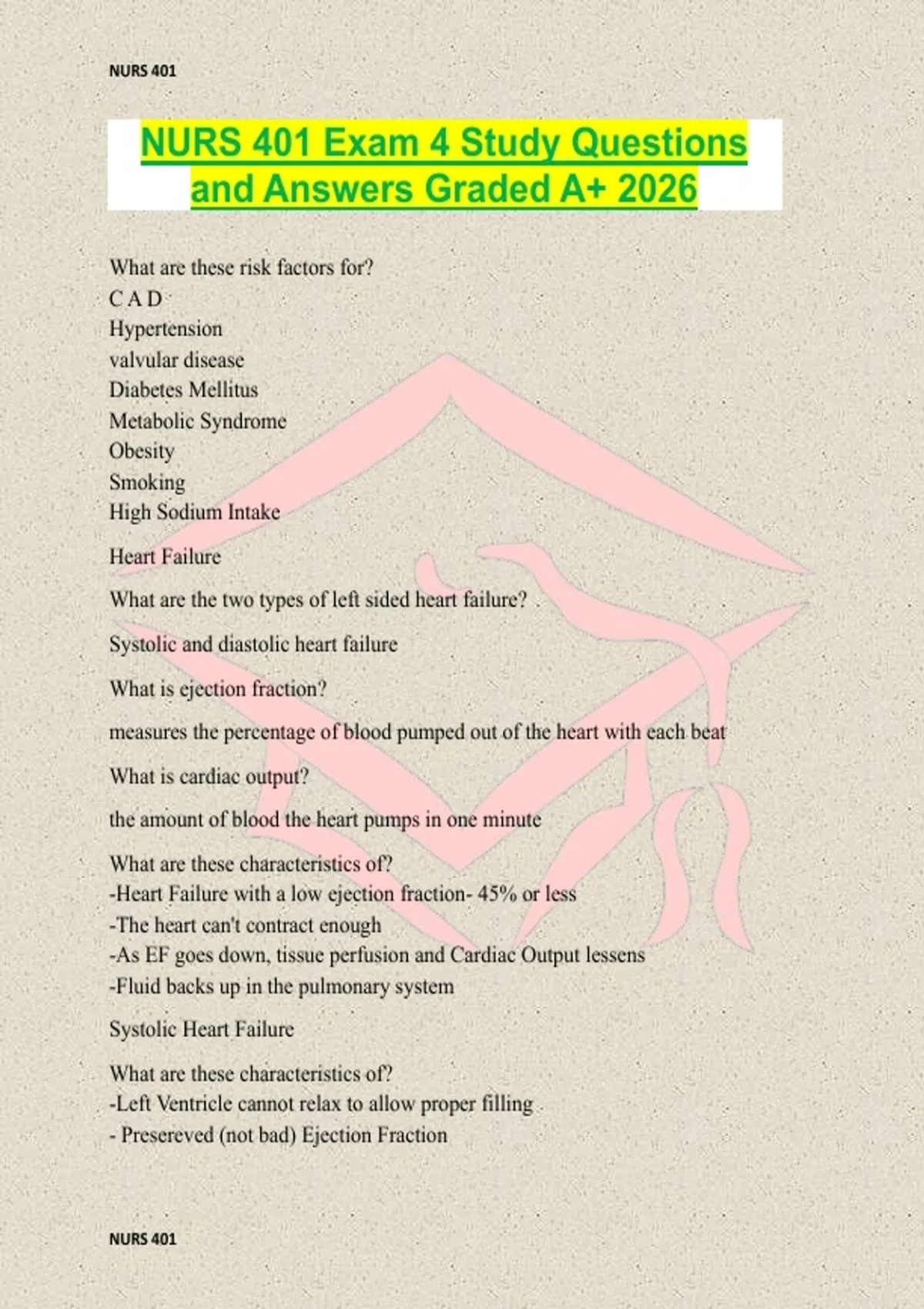 NURS 401 Exam 4 Study Questions and Answers Graded A+ 2026