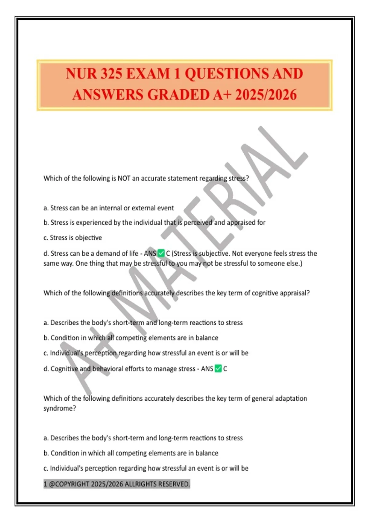NUR 325 EXAM 1 QUESTIONS AND ANSWERS GRADED A+ 2025/2026