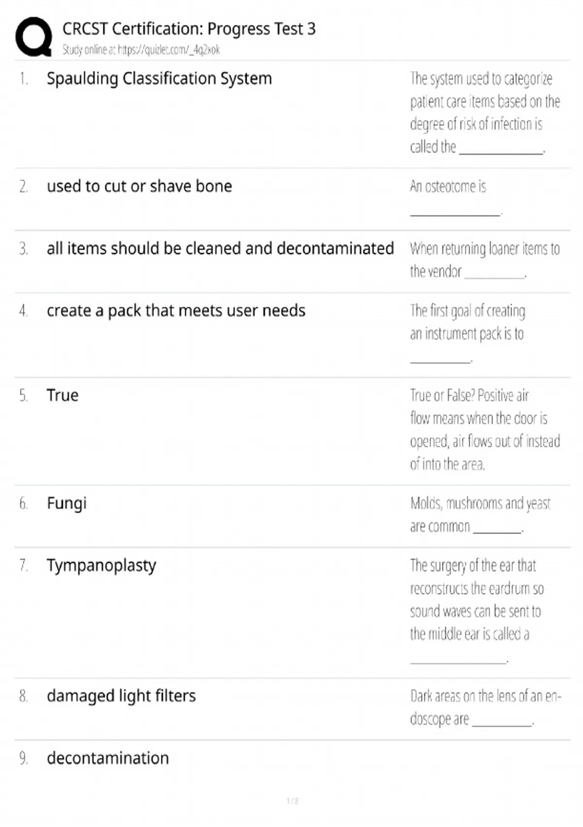 CRCST Certification Progress Test 3 / Sterile Processing Review / Study Guide & Exam Prep / Score 100% / 2025 Update