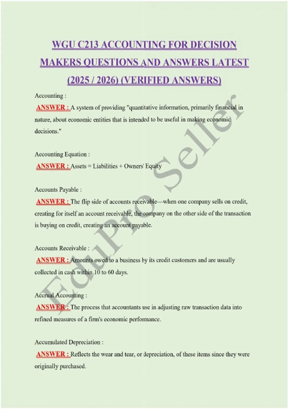 WGU C213 ACCOUNTING FOR DECISION MAKERS QUESTIONS AND ANSWERS LATEST (2025 / 2026) (VERIFIED ANSWERS)