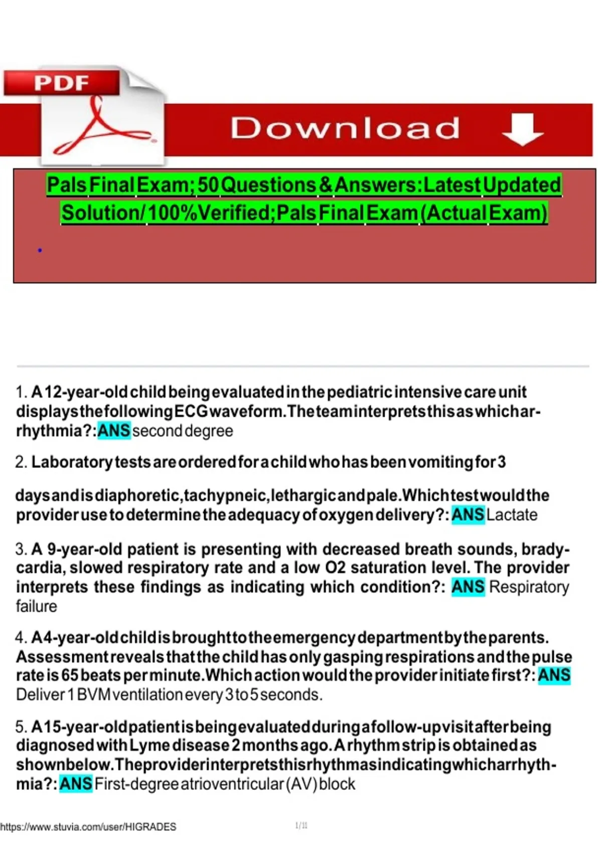 Pals Final Exam; 50 Questions & Answers:Latest Updated