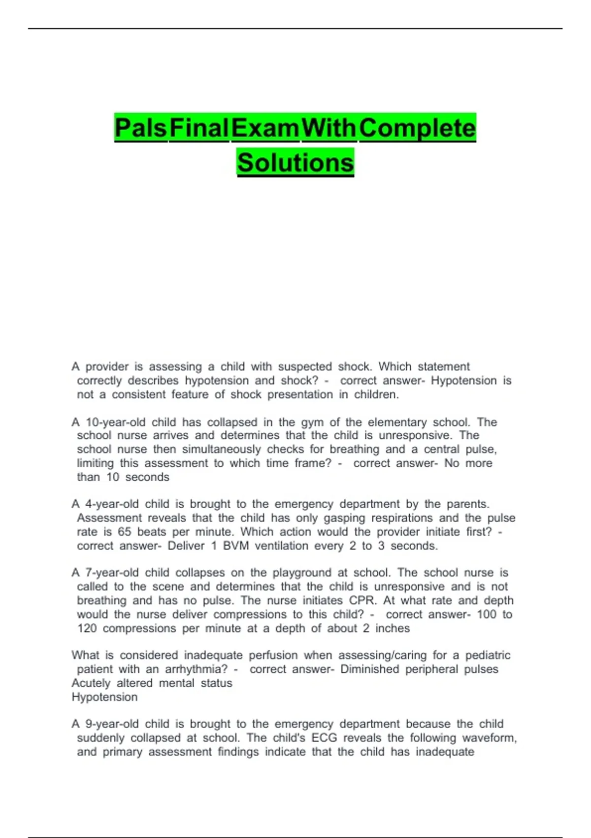 PALS FINAL EXAM WITH COMPLETE SOLUTIONS.