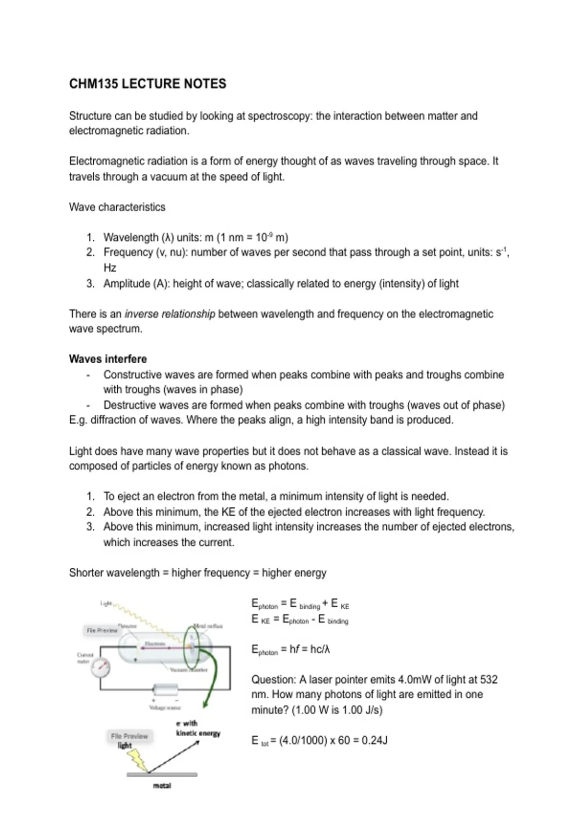 3.​ Amplitude (A): height of wave; classically related to energy (intensity) of light