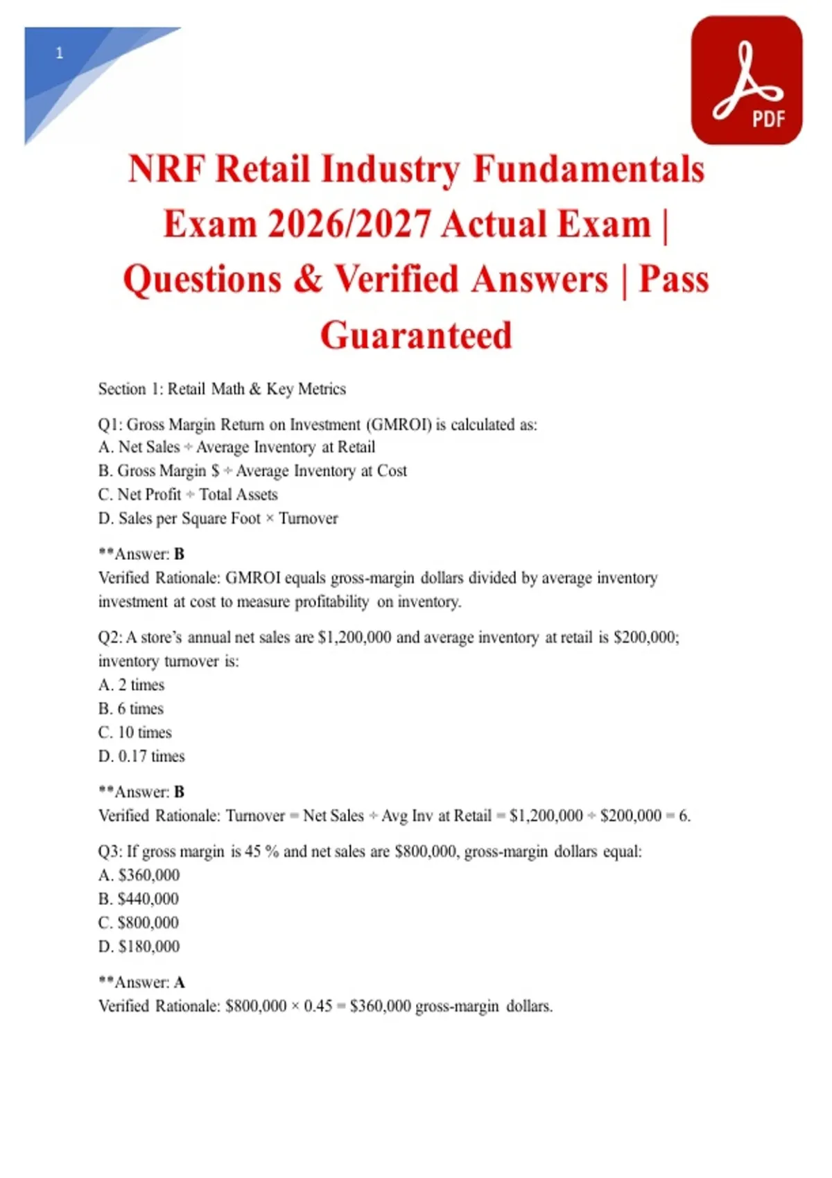 Questions & Verified Answers | Pass