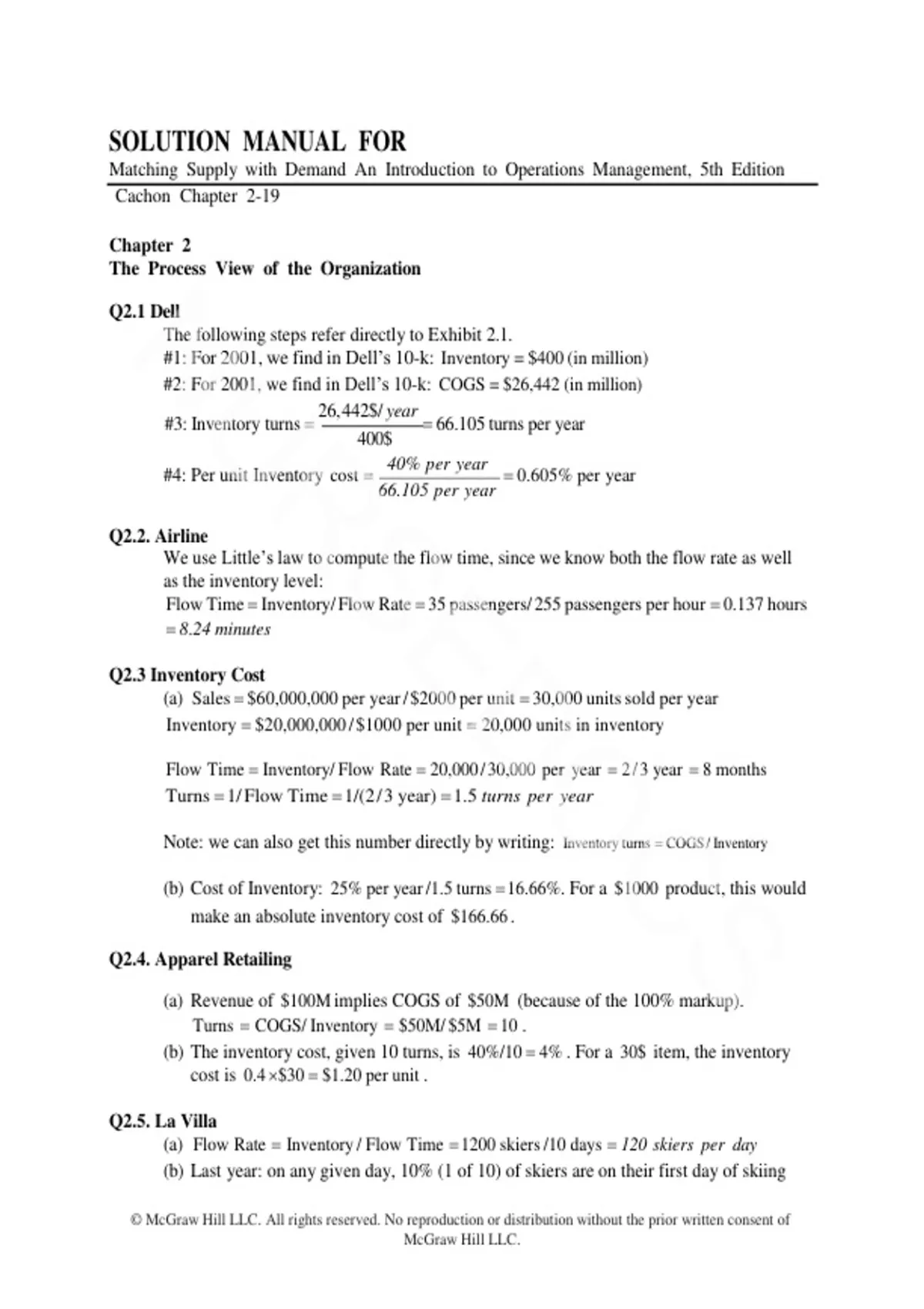 Matching Supply with Demand: An Introduction to Operations Management – 5th Edition by Gérard P. Cachon | Complete Solutions Manual