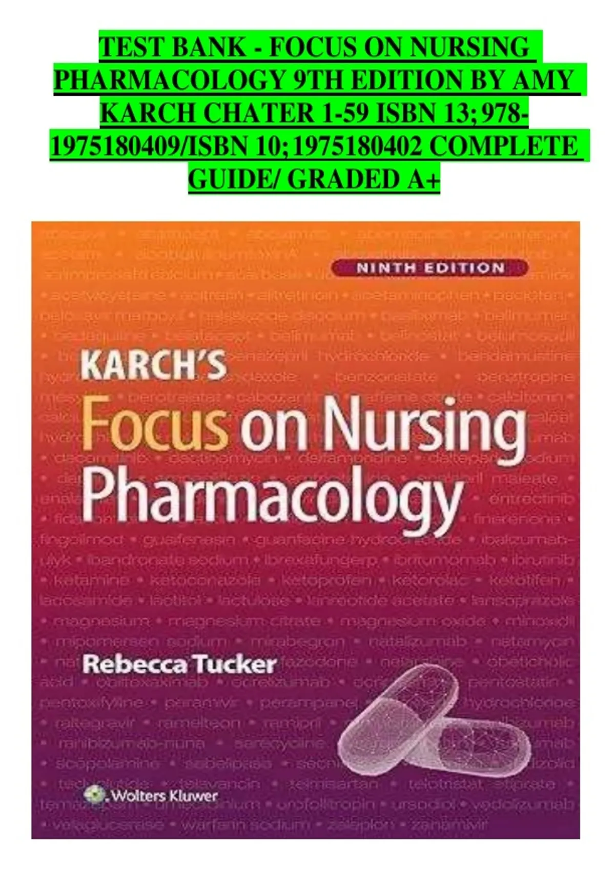 Focus on Nursing Pharmacology – 9th Edition by Amy Karch, Chapters 1–59, Complete Test Bank and Study Guide (Graded A+)