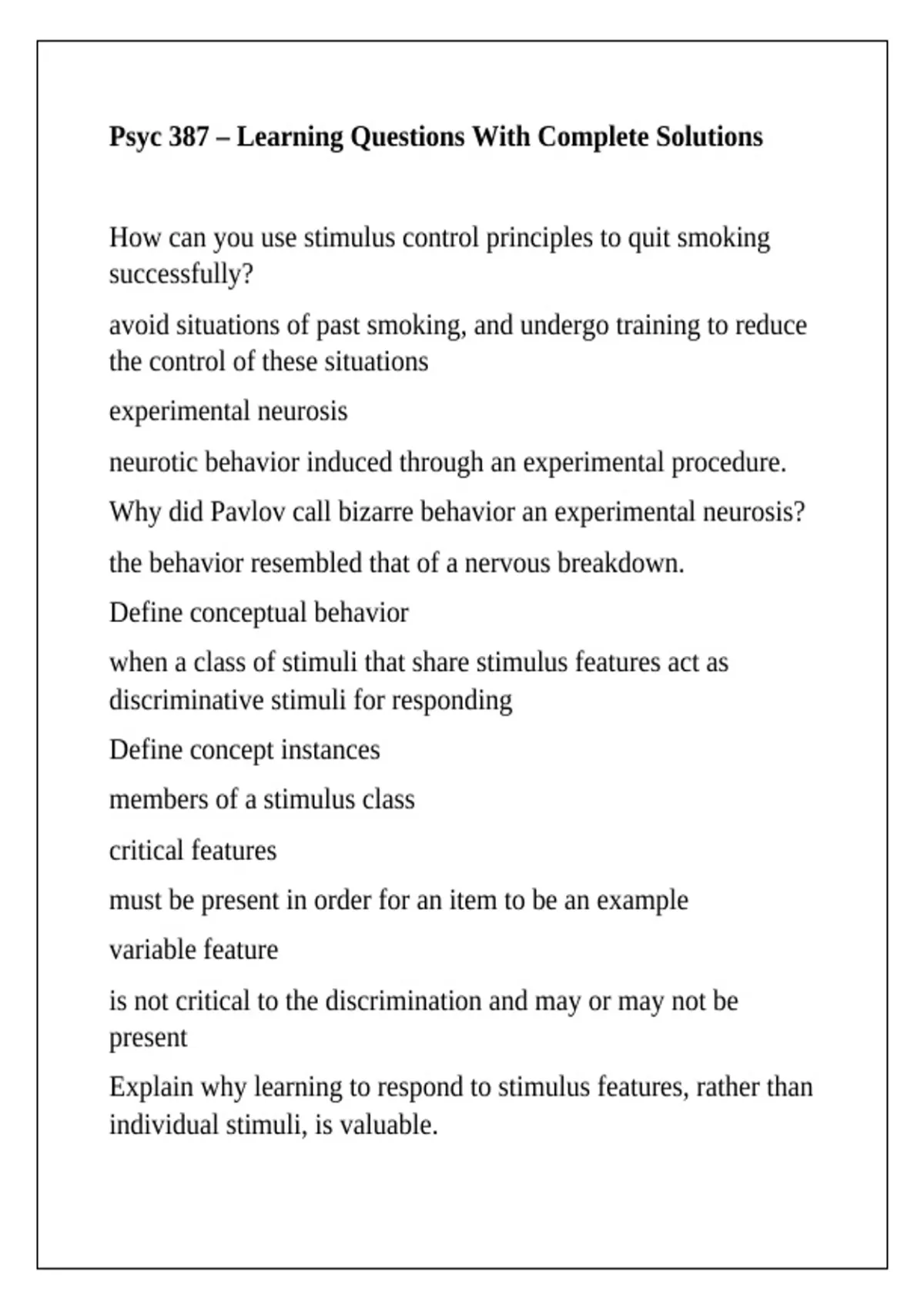 Psyc 387 – Learning Questions With Complete Solutions