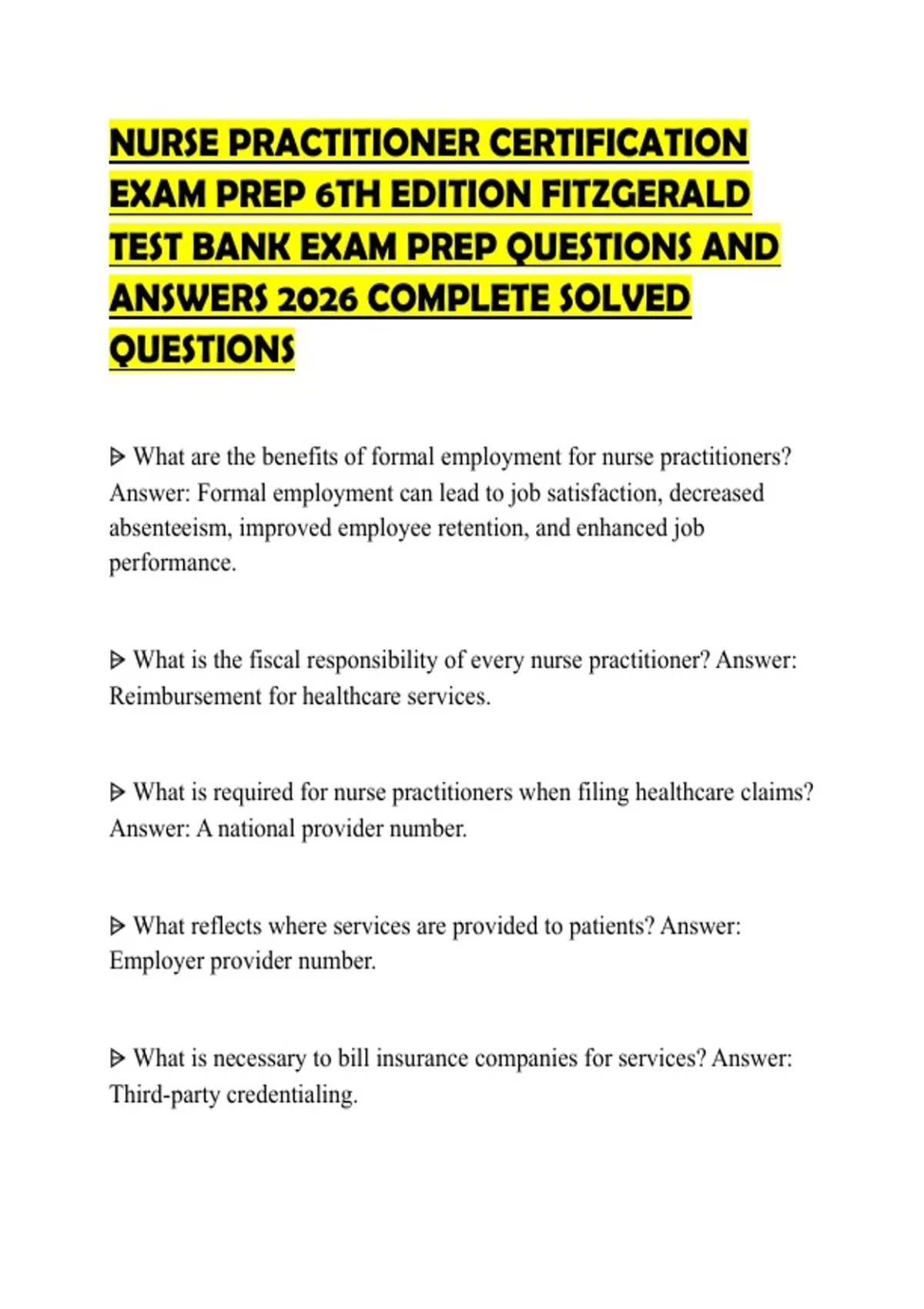 NURSE PRACTITIONER CERTIFICATION EXAM PREP 6TH EDITION FITZGERALD TEST BANK EXAM PREP QUESTIONS AND ANSWERS 2026 COMPLETE SOLVED QUESTIONS