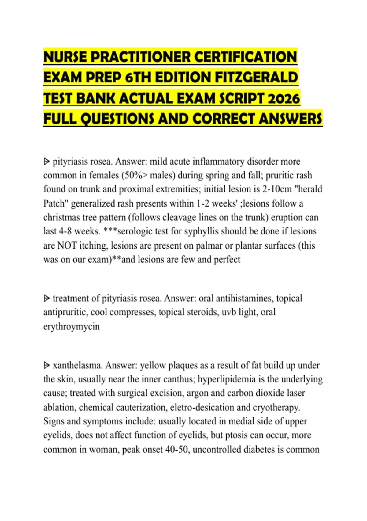 NURSE PRACTITIONER CERTIFICATION EXAM PREP 6TH EDITION FITZGERALD TEST BANK ACTUAL EXAM SCRIPT 2026 FULL QUESTIONS AND CORRECT ANSWERS