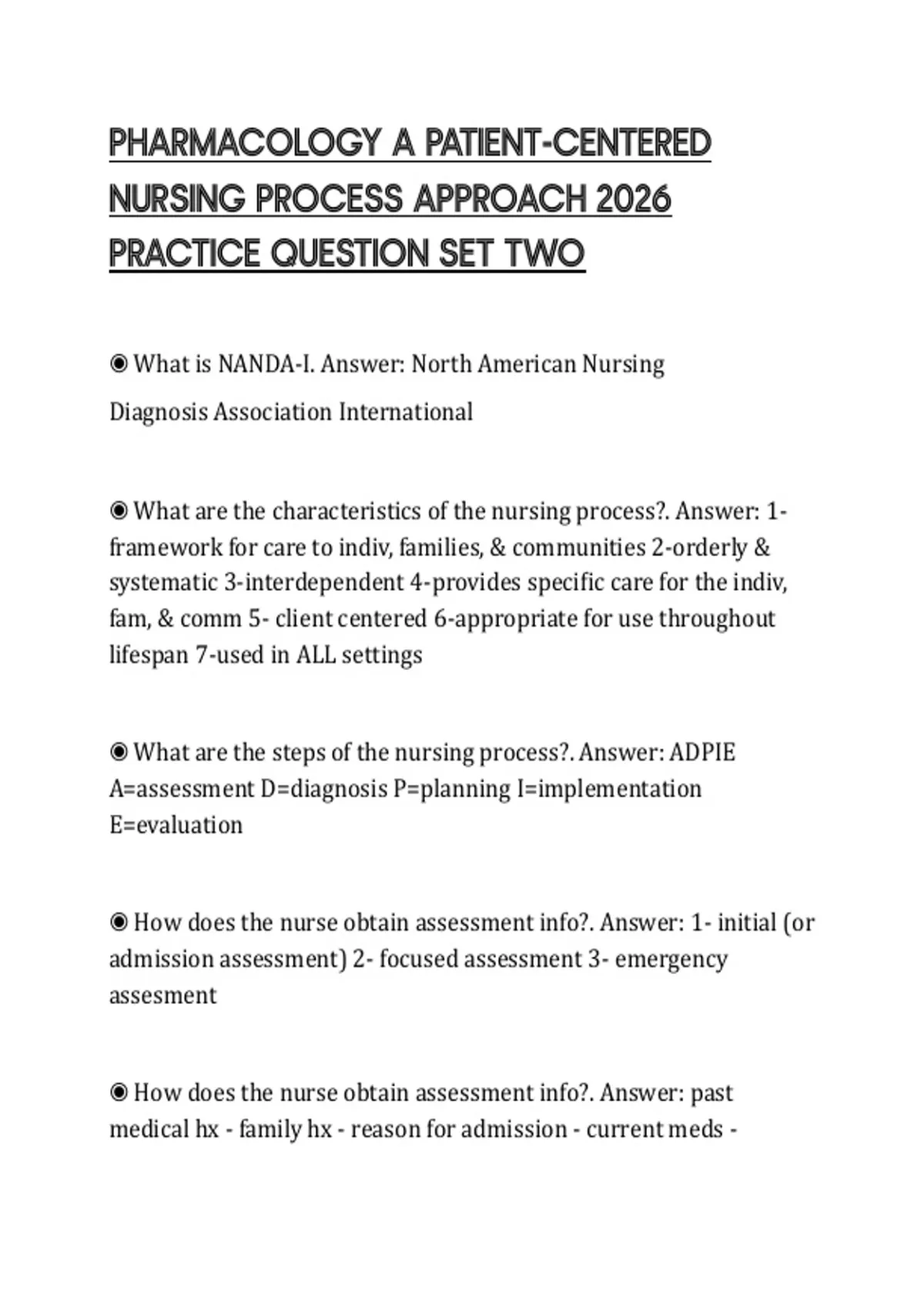 PHARMACOLOGY A PATIENT-CENTERED NURSING PROCESS APPROACH 2026 PRACTICE QUESTION SET TWO