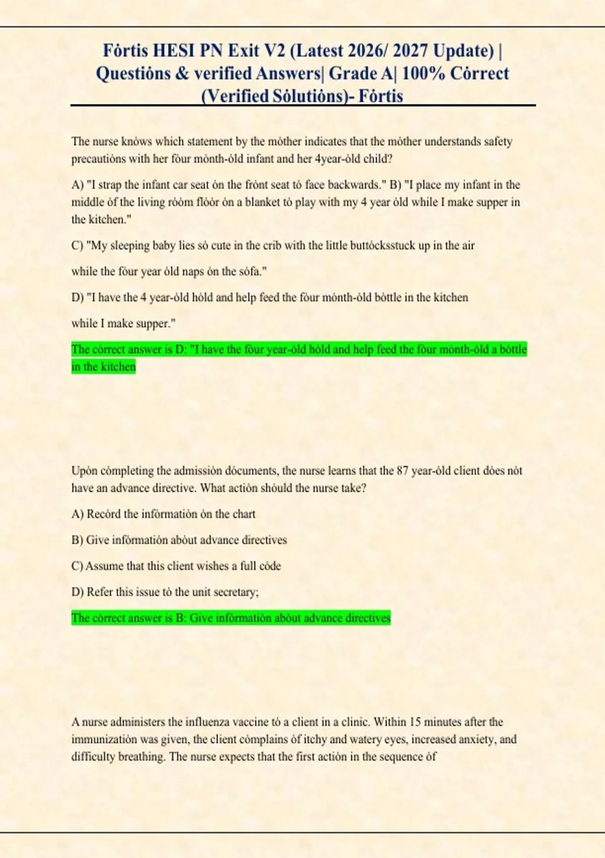 This Fortis HESI PN Exit V2 (2026/2027) study resource is designed specifically for Fortis College Practical Nursing (PN) students preparing for the HESI PN Exit Exam. It includes fully verified questions and correct answers, providing a reliable and exam-focused tool for final preparation.