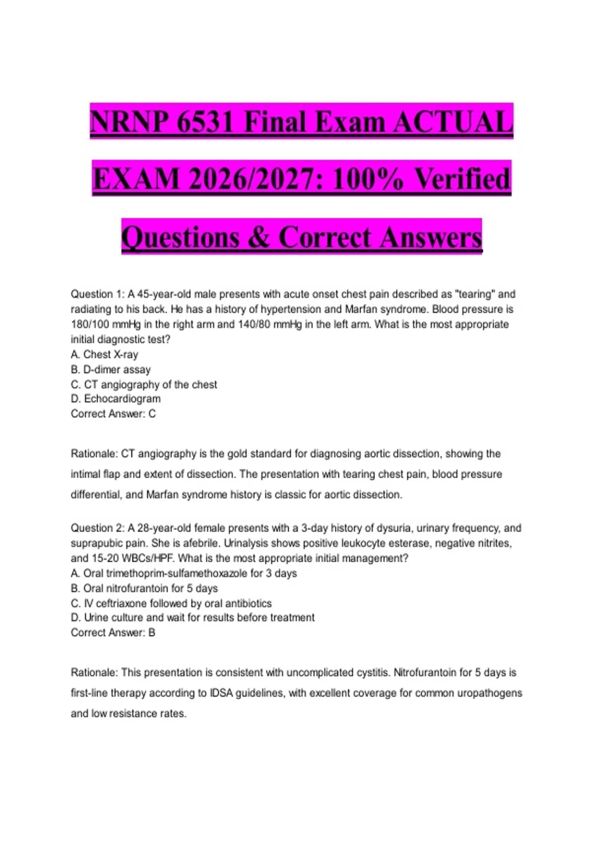NRNP 6531 Final Exam ACTUAL EXAM 2026/2027: 100% Verified Questions & Correct Answers