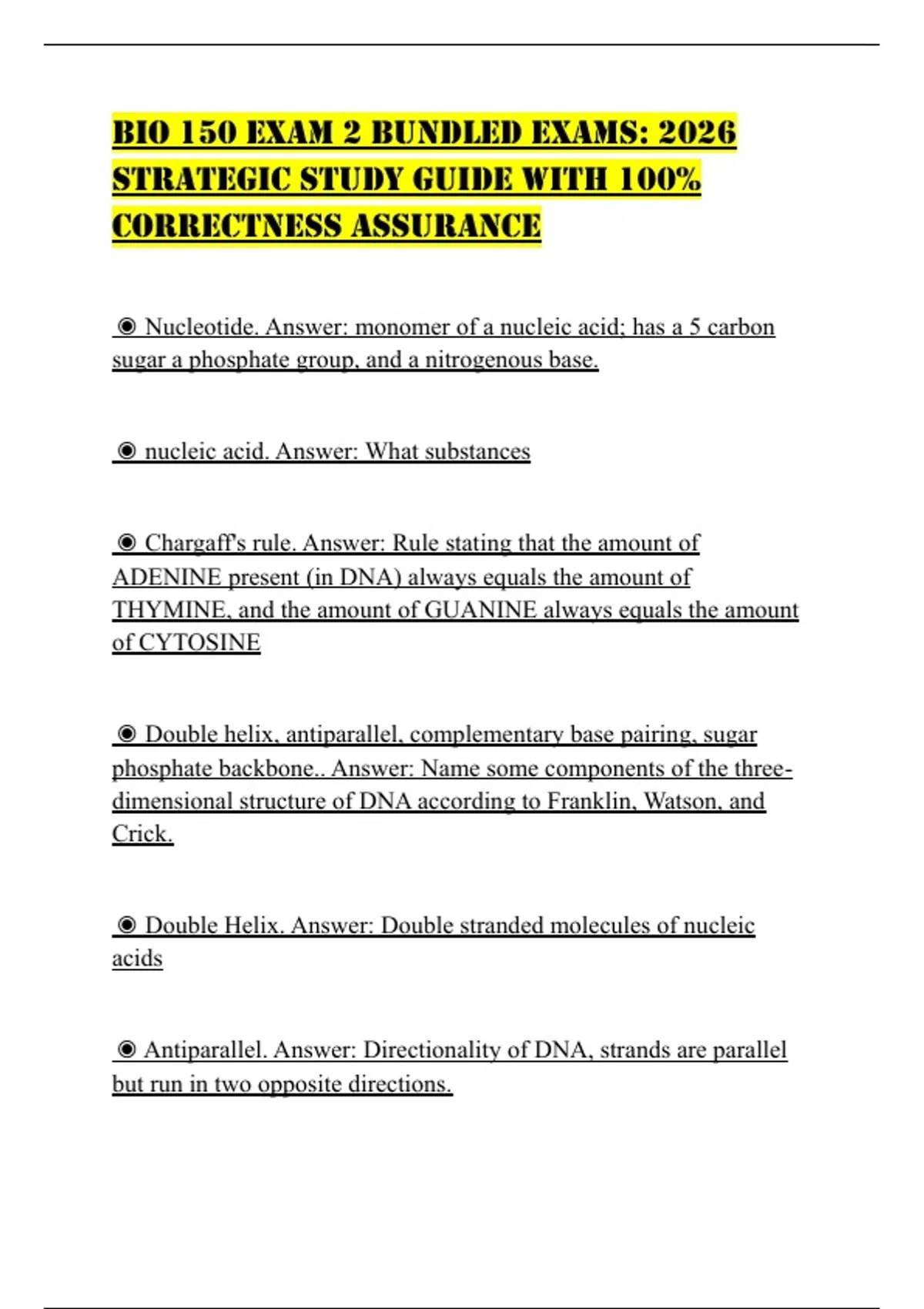 BIO 150 EXAM 2 BUNDLED EXAMS: 2026 STRATEGIC STUDY GUIDE WITH 100% CORRECTNESS ASSURANCE