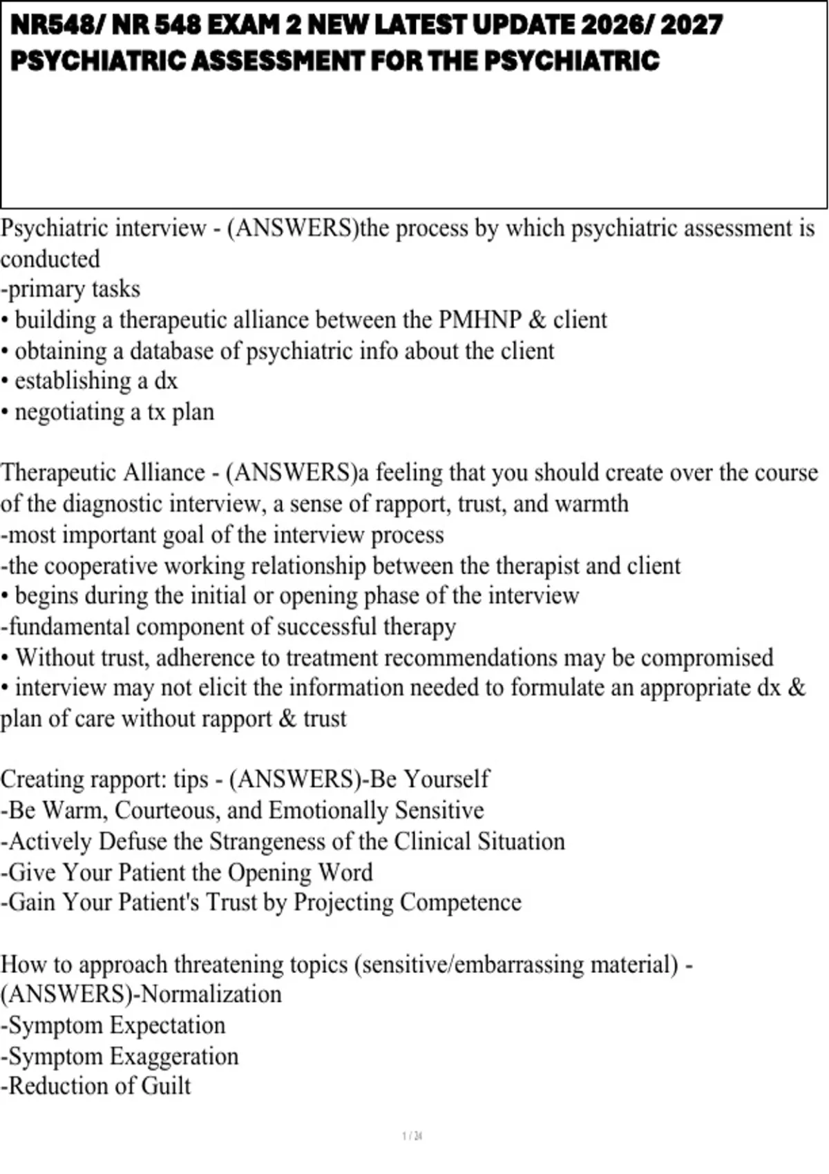 Establishing the Relationship - (ANSWERS)-Trust is essential for a therapeutic