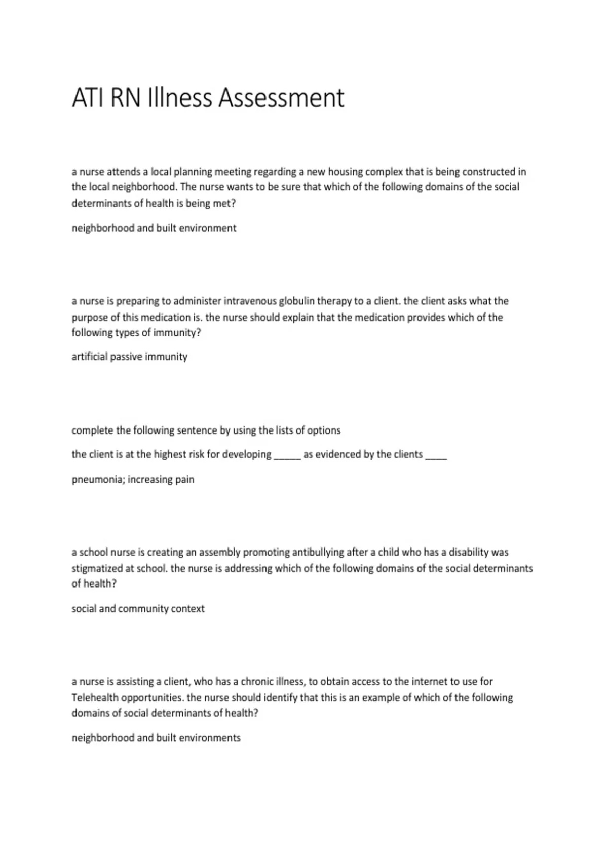 ATI RN Illness Assessment.pdf ATI RN Illness Assessment| Questions & Verified Answers