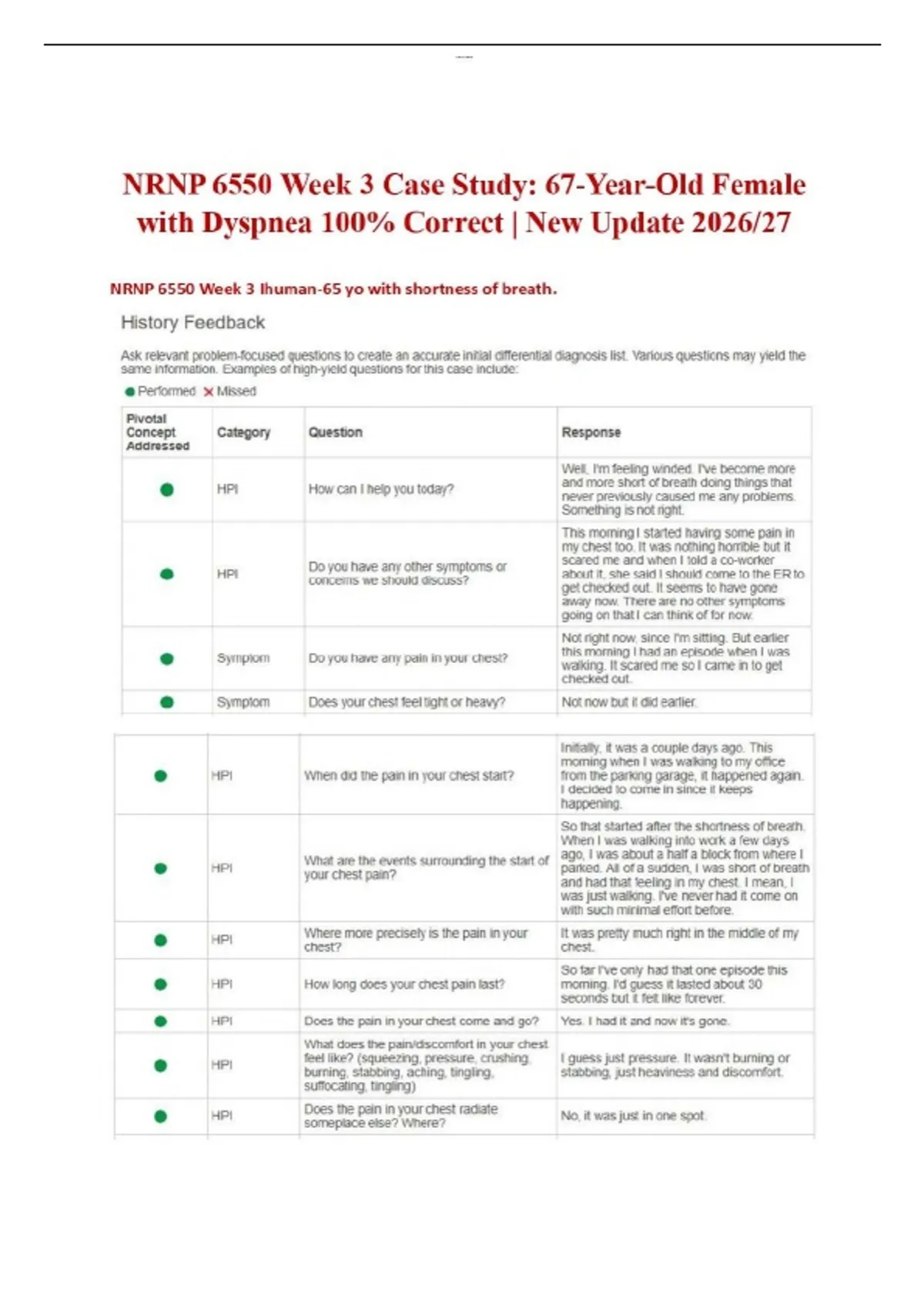 NRNP 6550 Week 3 Case Study: 67-Year-Old Female with Dyspnea 100% Correct | New Update 2026/27