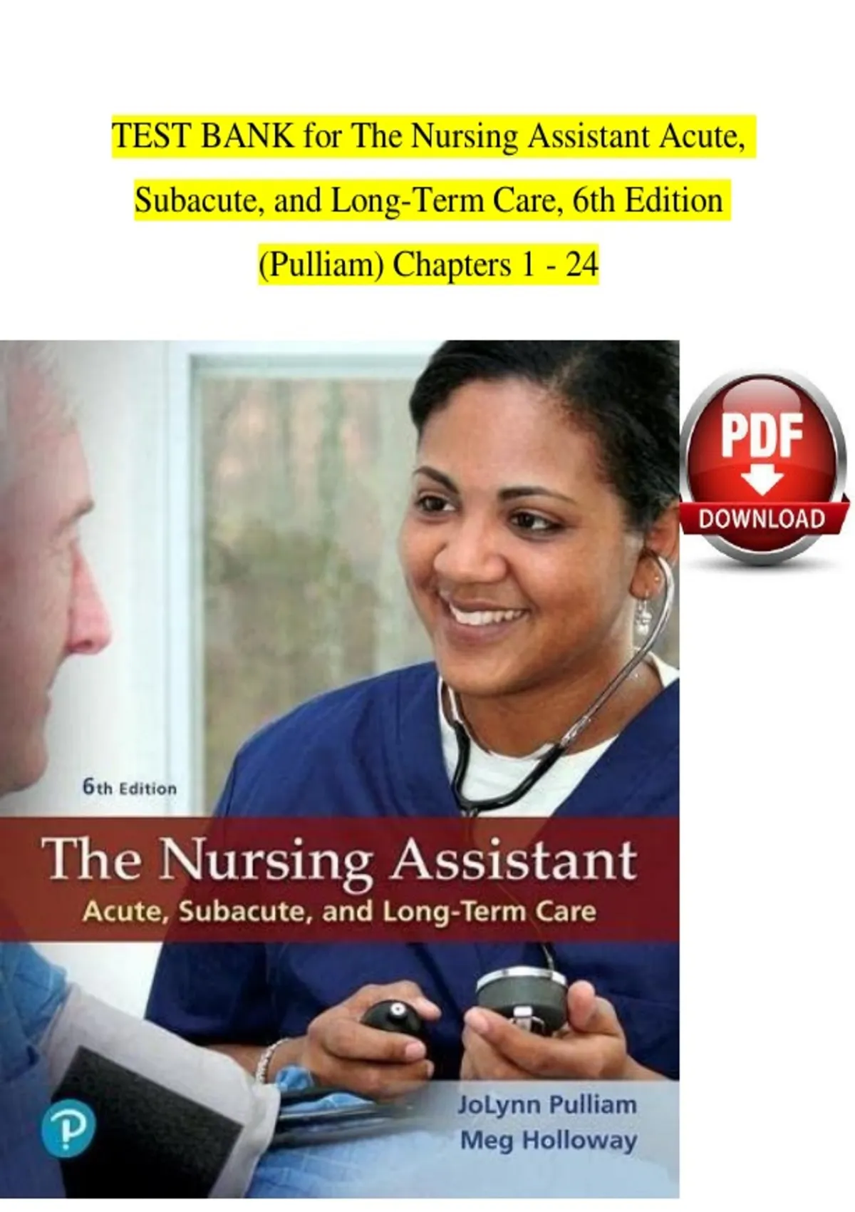, Test Bank - The Nursing Assistant: Acute, Subacute, and Long-Term Care, 6e (Pulliam, 2020)