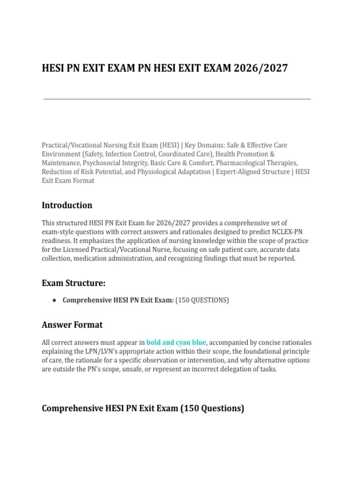 HESI PN Exit Exam 2026/2027 | Practical Nursing Comprehensive Assessment & NCLEX-PN Readiness