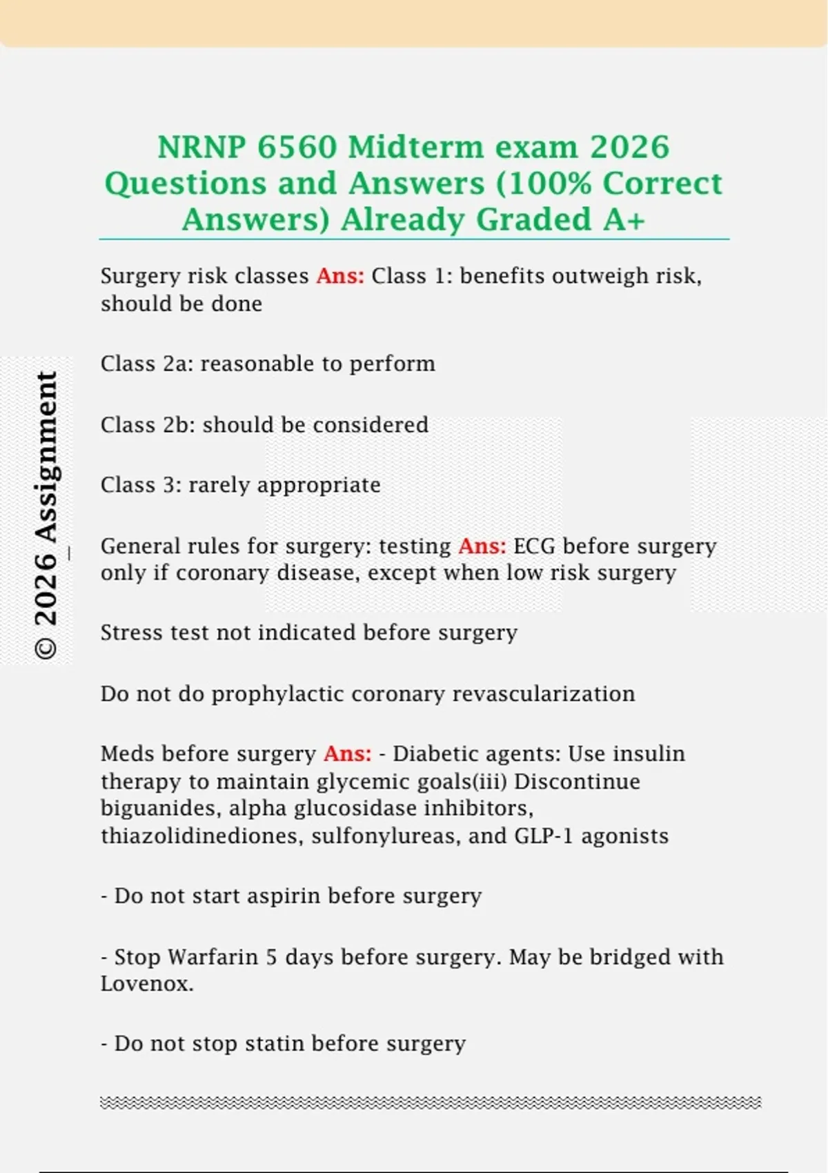 NRNP 6560 Midterm exam 2026 Questions and Answers (100% Correct Answers) Already Graded A+