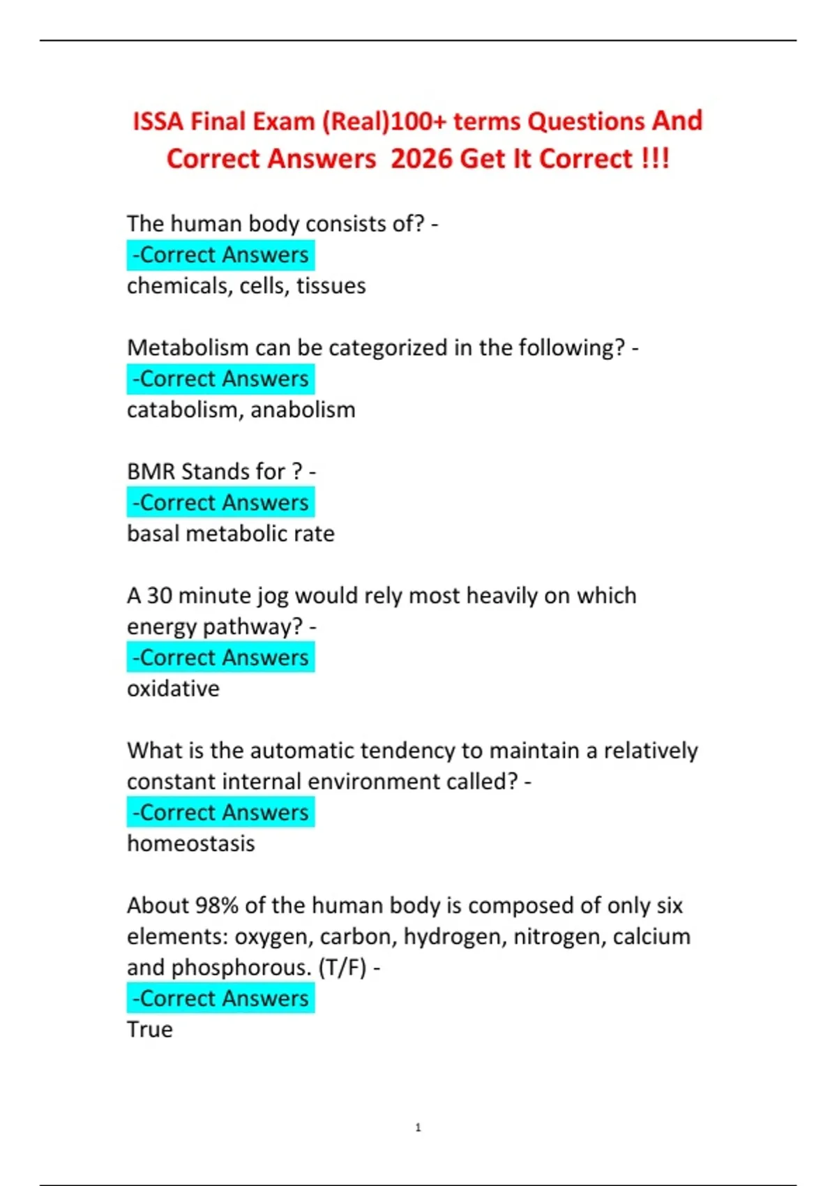ISSA Final Exam (Real)100+ terms Questions And Correct Answers 2026 Get It Correct !!!