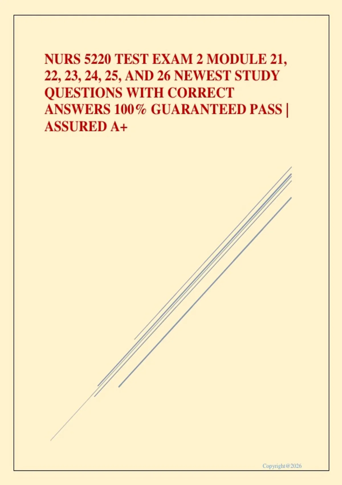 NURS 5220 TEST EXAM 2 MODULE 21, 22, 23, 24, 25, AND 26 NEWEST STUDY QUESTIONS WITH CORRECT ANSWERS 100% GUARANTEED PASS | ASSURED A+