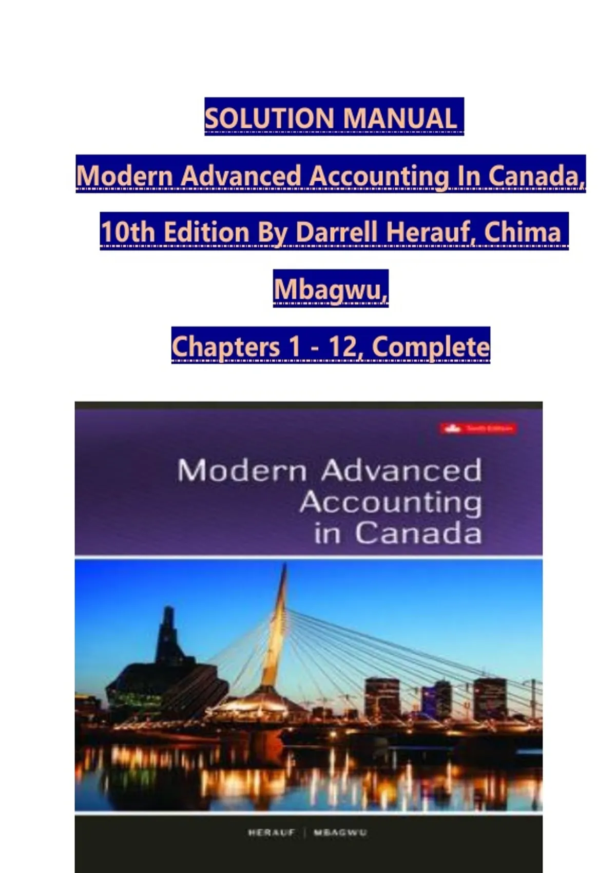 This solution manual for Modern Advanced Accounting in Canada, 10th Edition provides accurate, step-by-step solutions to complex end-of-chapter problems covering business combinations, consolidations, foreign currency translation, partnerships, and advanced financial reporting under Canadian standards. Ideal for upper-level accounting students and CPA Canada candidates seeking reliable support for assignments, exams, and advanced concept mastery.