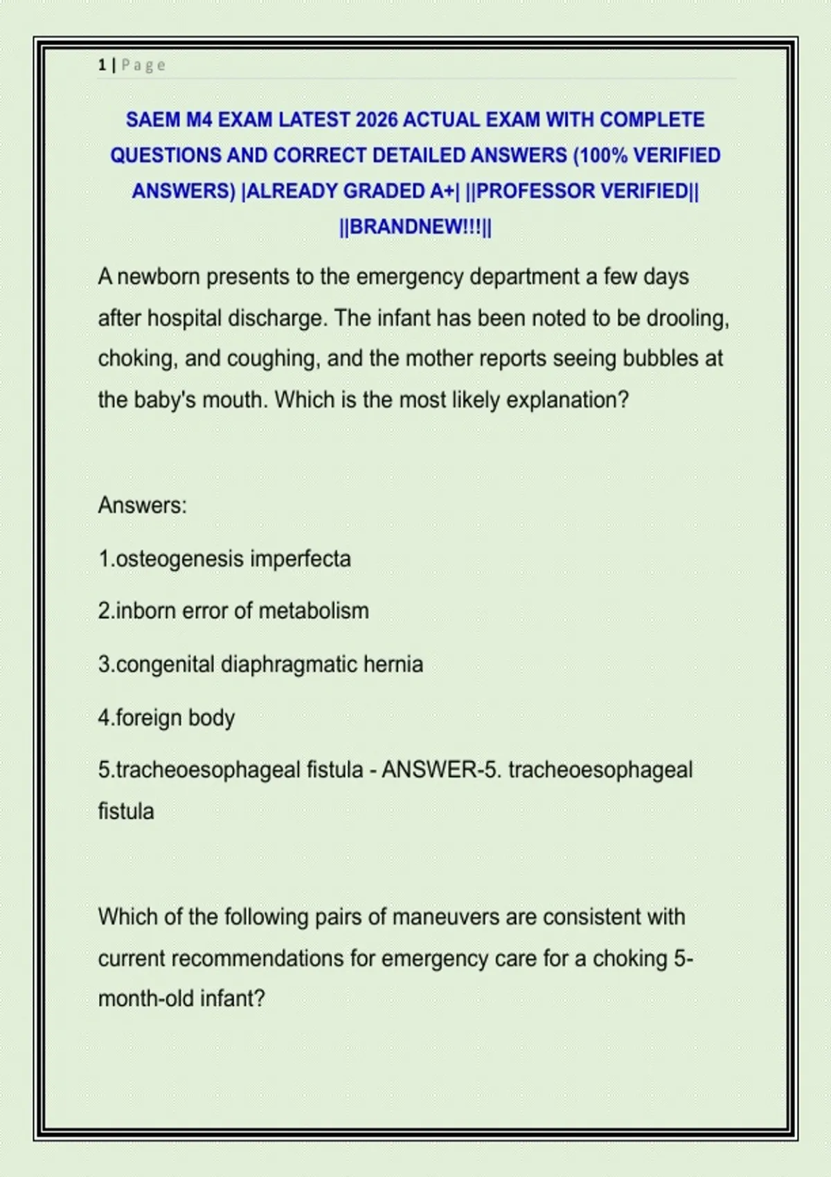 SAEM M4 EXAM LATEST 2026 ACTUAL EXAM WITH COMPLETE