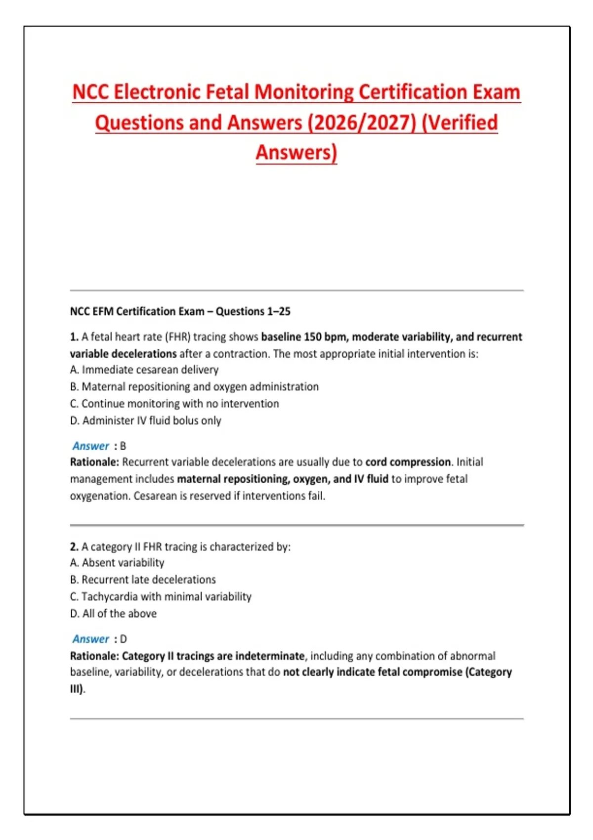 Rationale: Recurrent variable decelerations are usually due to cord compression. Initial