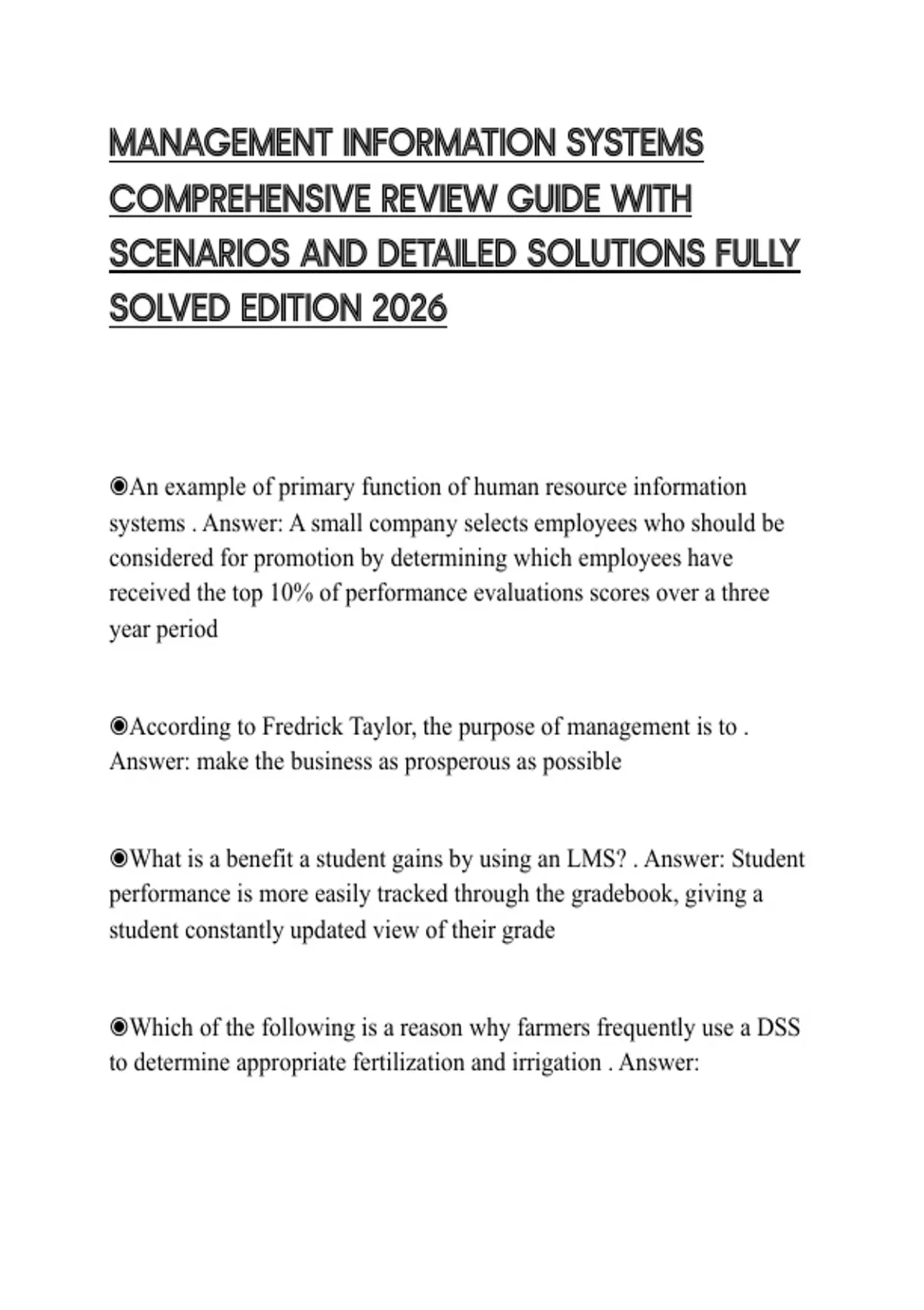 MANAGEMENT INFORMATION SYSTEMS COMPREHENSIVE REVIEW GUIDE WITH SCENARIOS AND DETAILED SOLUTIONS FULLY SOLVED EDITION 2026