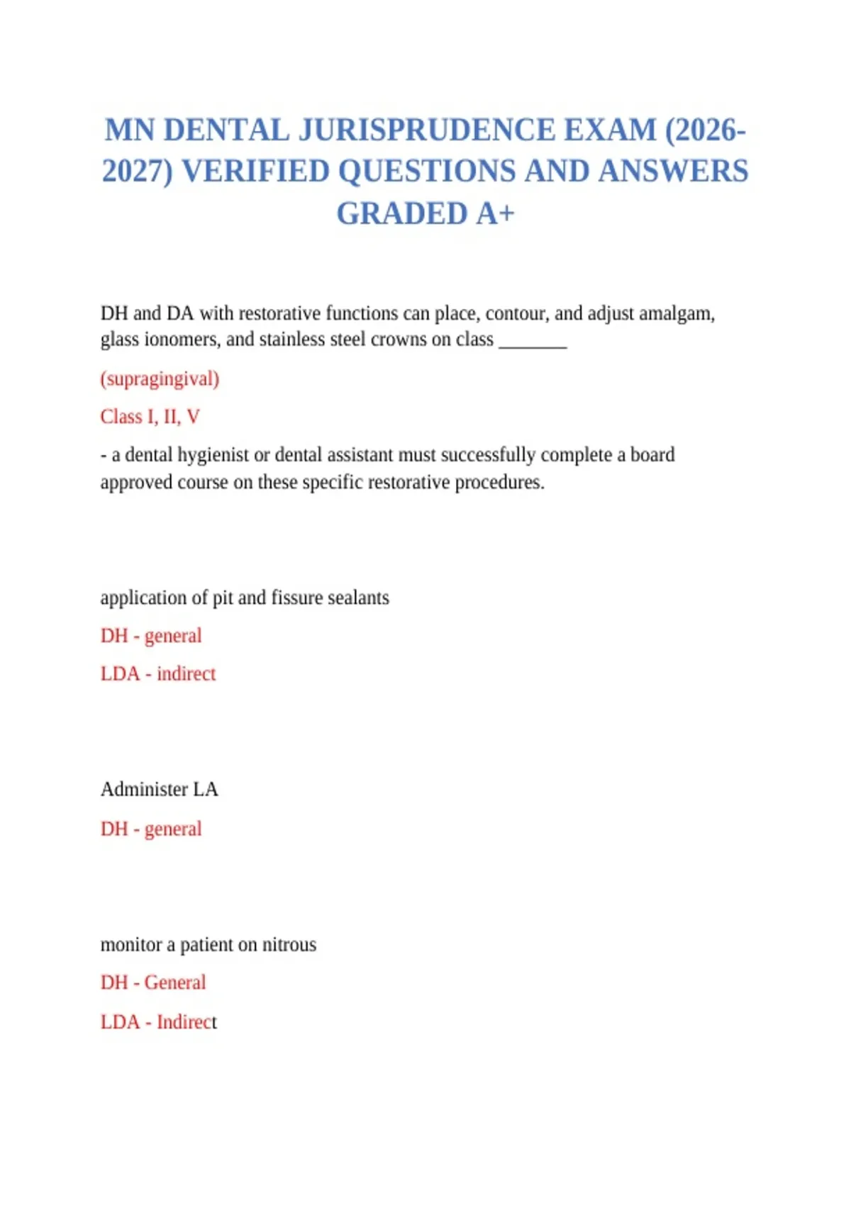 2027) VERIFIED QUESTIONS AND ANSWERS