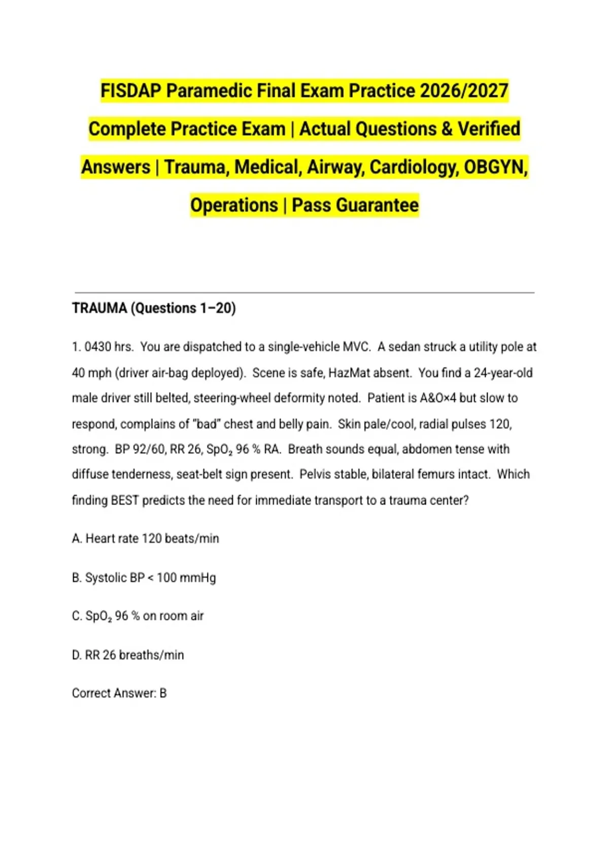 TRAUMA (Questions 1–20)