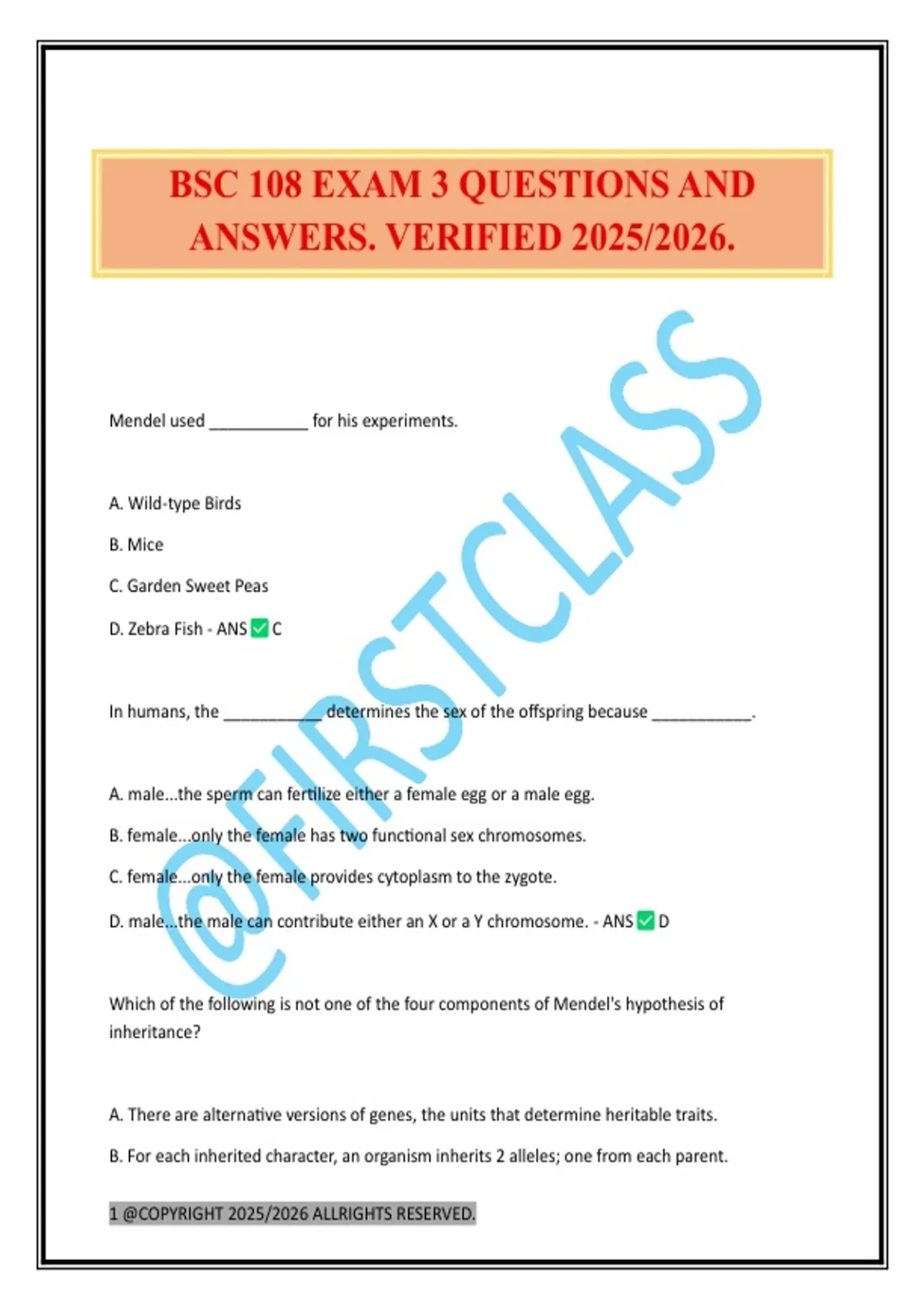 BSC 108 EXAM 3 QUESTIONS AND