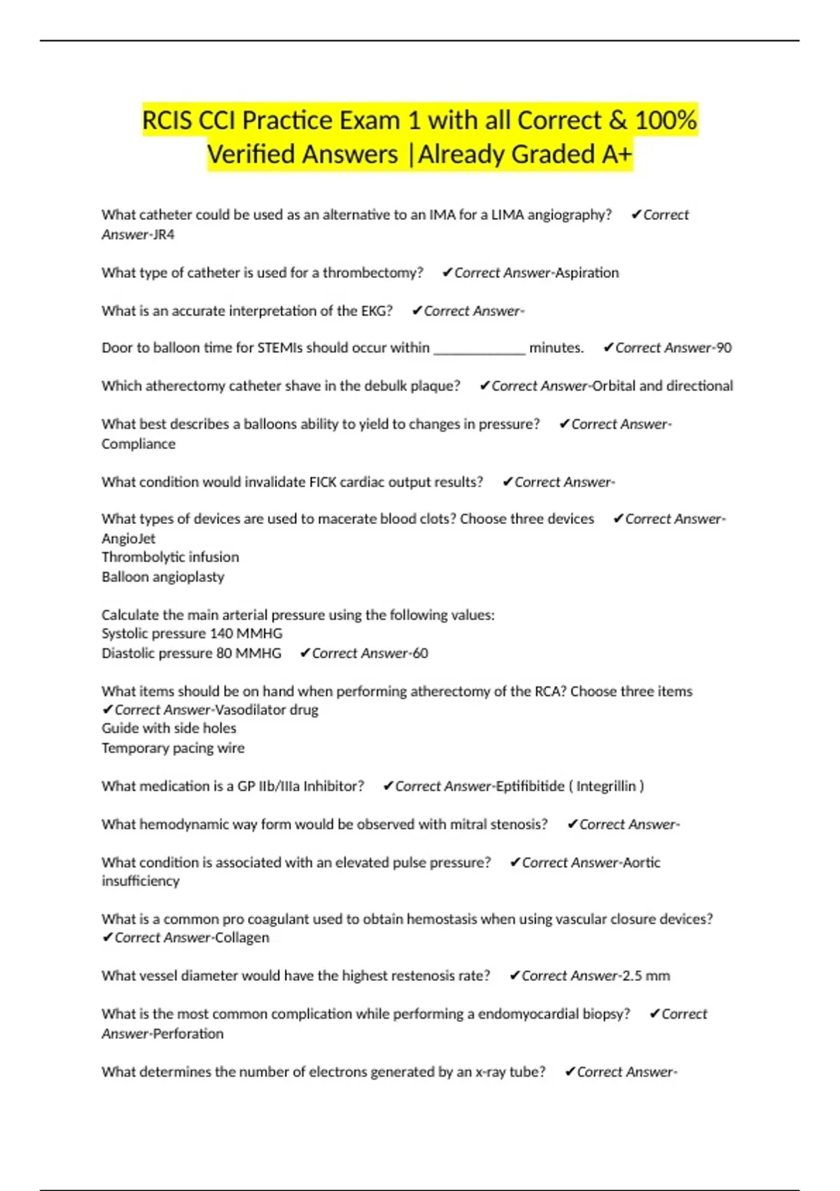 RCIS CCI Practice Exam 1 with all Correct & 100% Verified Answers |Already Graded A+