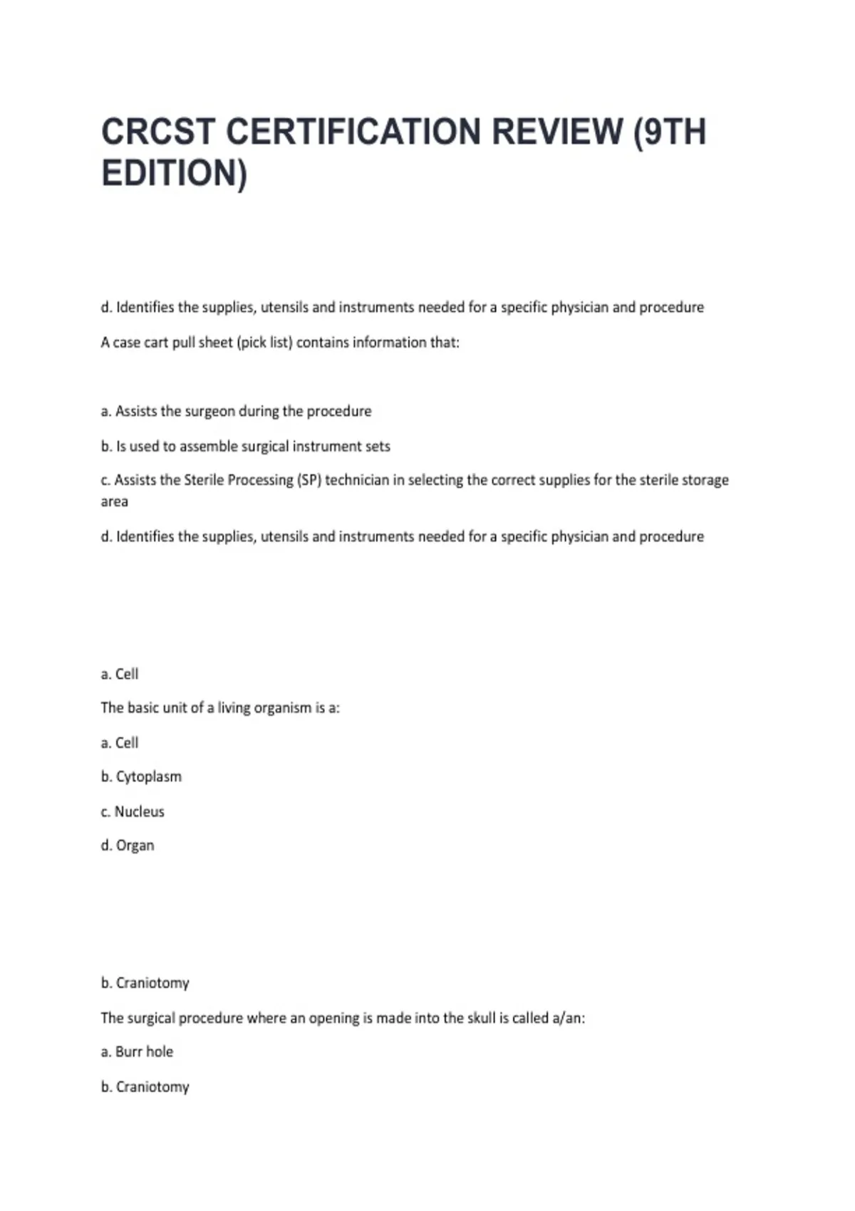 ,2026: 100% correct -2 CRCST CERTIFICATION REVIEW (9TH EDITION) CRCST CERTIFICATION REVIEW (9TH EDITION).pdf