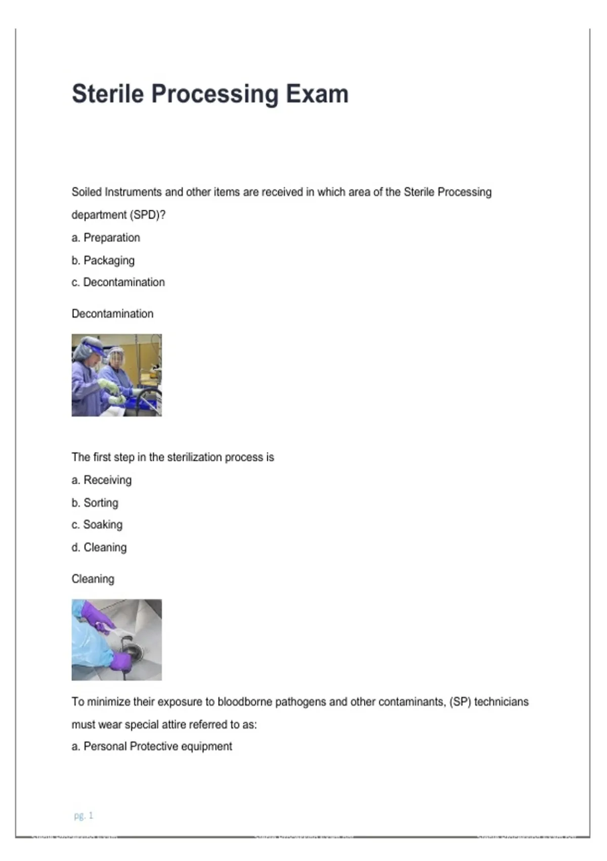 Page 1 of 35 Sterile Processing Exam - Updated with Solution | All Covered Sterile Processing Exam.pdf