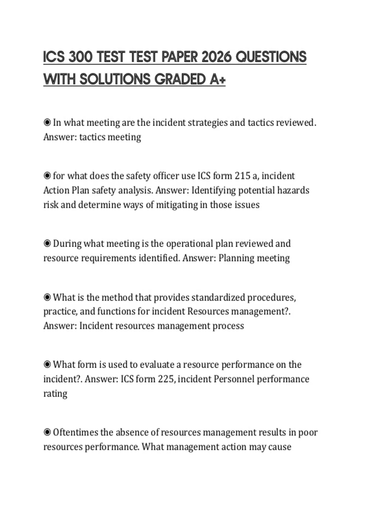 ICS 300 TEST TEST PAPER 2026 QUESTIONS WITH SOLUTIONS GRADED A+