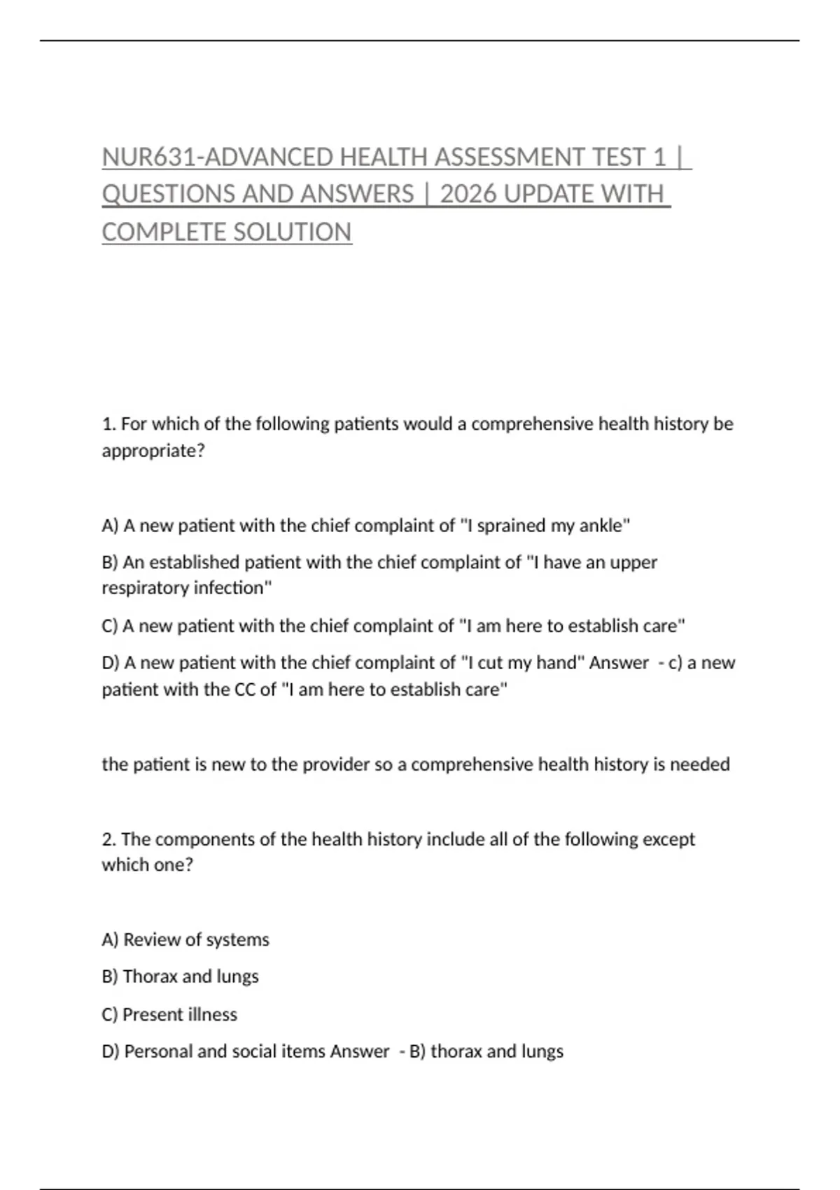 1. For which of the following patients would a comprehensive health history be