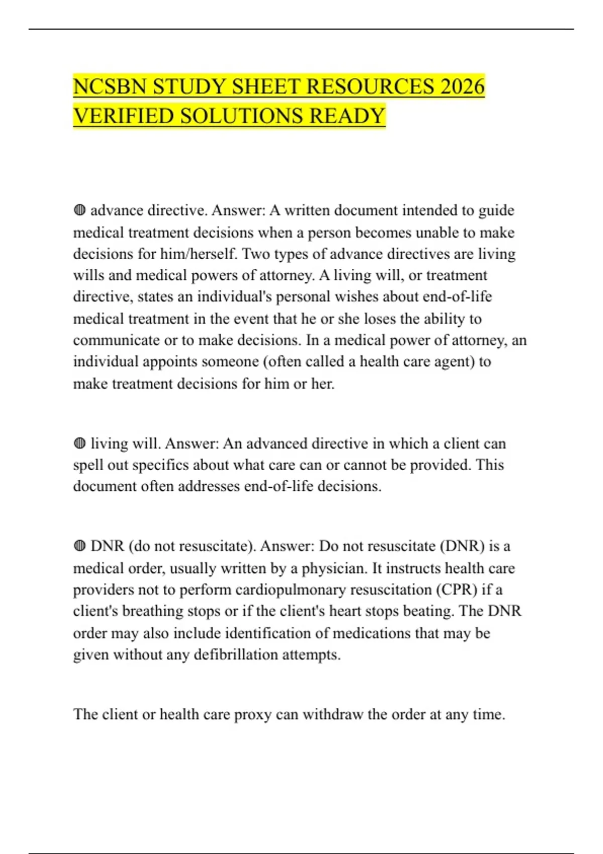 NCSBN STUDY SHEET RESOURCES 2026 VERIFIED SOLUTIONS READY