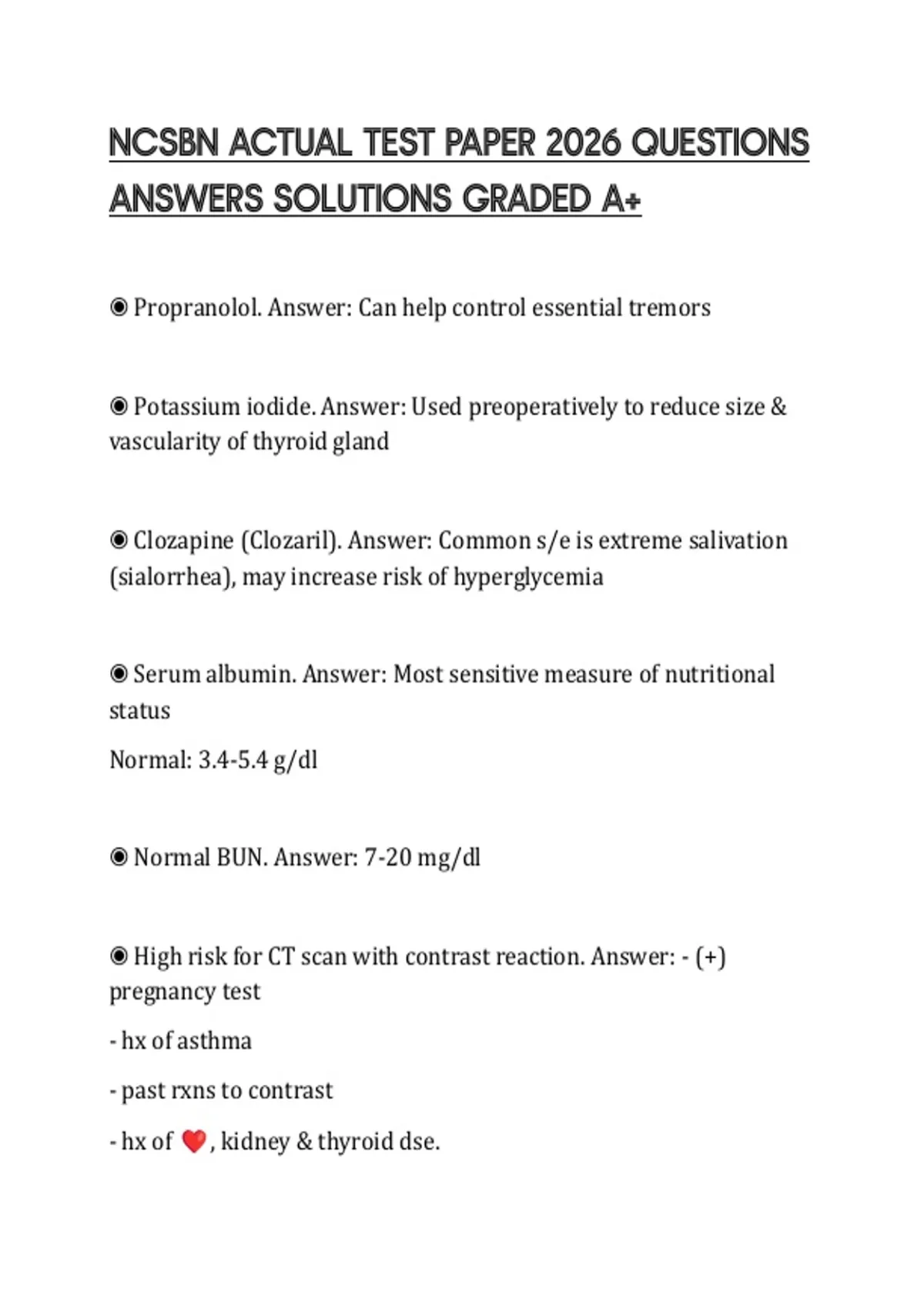 NCSBN ACTUAL TEST PAPER 2026 QUESTIONS ANSWERS SOLUTIONS GRADED A+