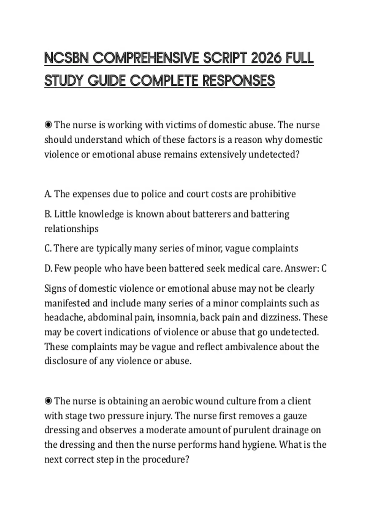 ◉ The nurse is working with victims of domestic abuse. The nurse