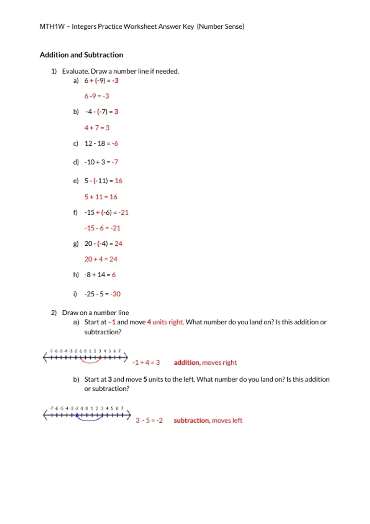 a) Start at –1 and move 4 units right. What number do you land on? Is this addition or
