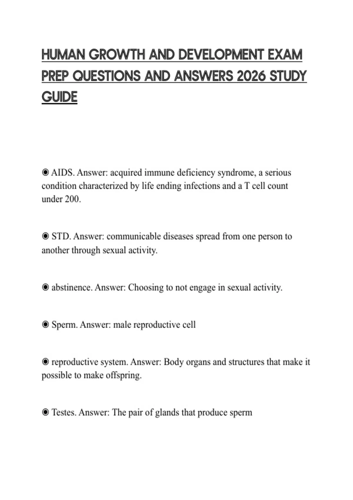 HUMAN GROWTH AND DEVELOPMENT EXAM PREP QUESTIONS AND ANSWERS 2026 STUDY GUIDE
