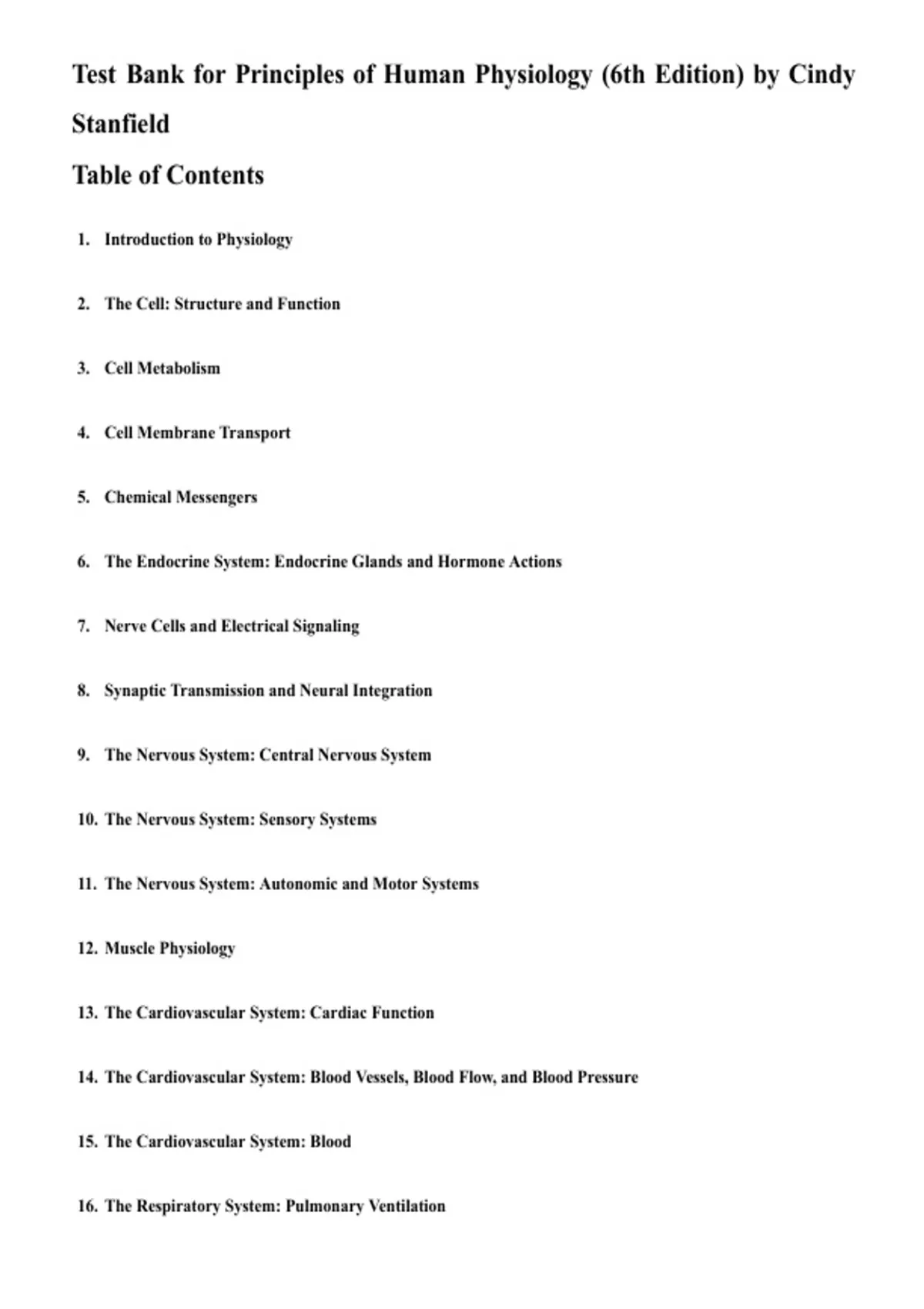 Test Bank for Principles of Human Physiology (6th Edition) by Cindy