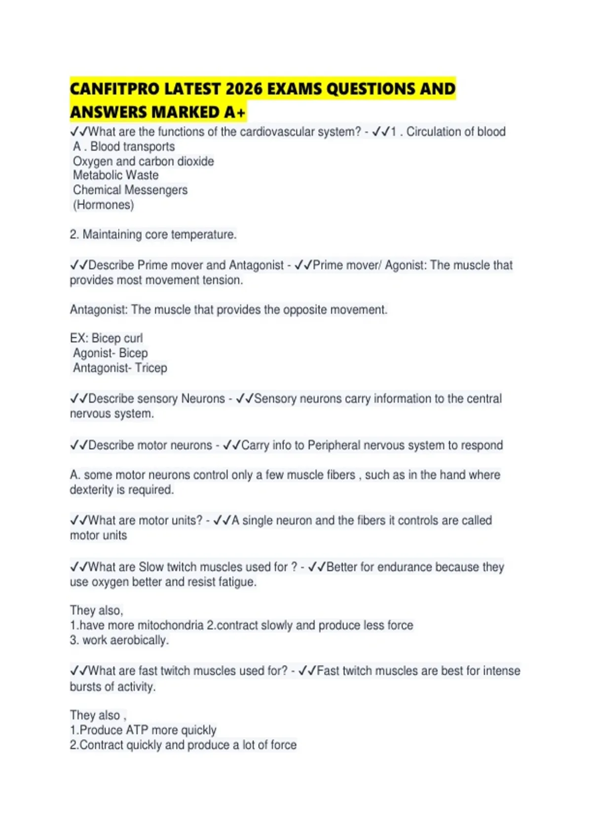 CANFITPRO LATEST 2026 EXAMS QUESTIONS AND ANSWERS MARKED