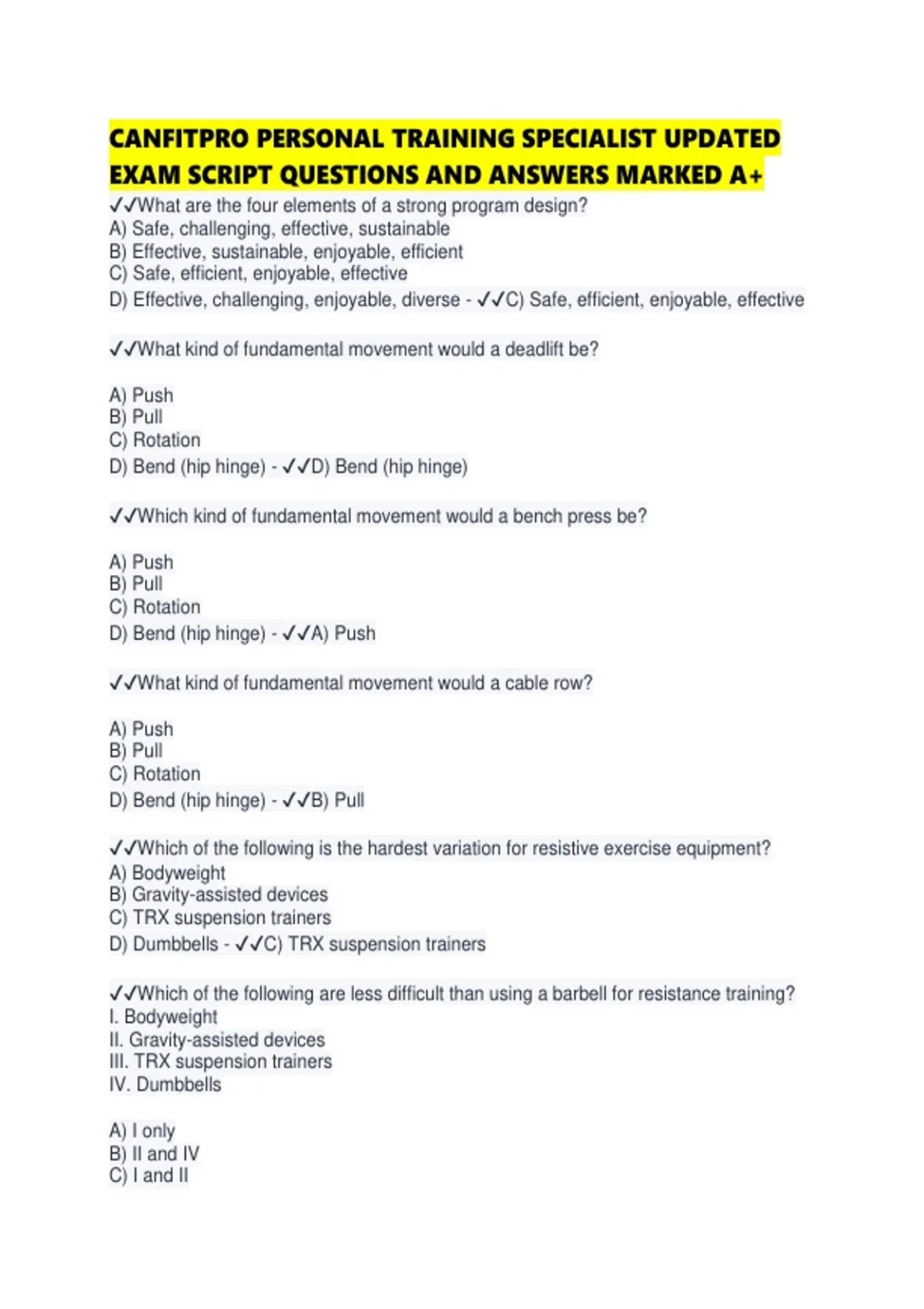 CANFITPRO PERSONAL TRAINING SPECIALIST UPDATED EXAM SCRIPT QUESTIONS AND ANSWERS MARKED A.pdf 1